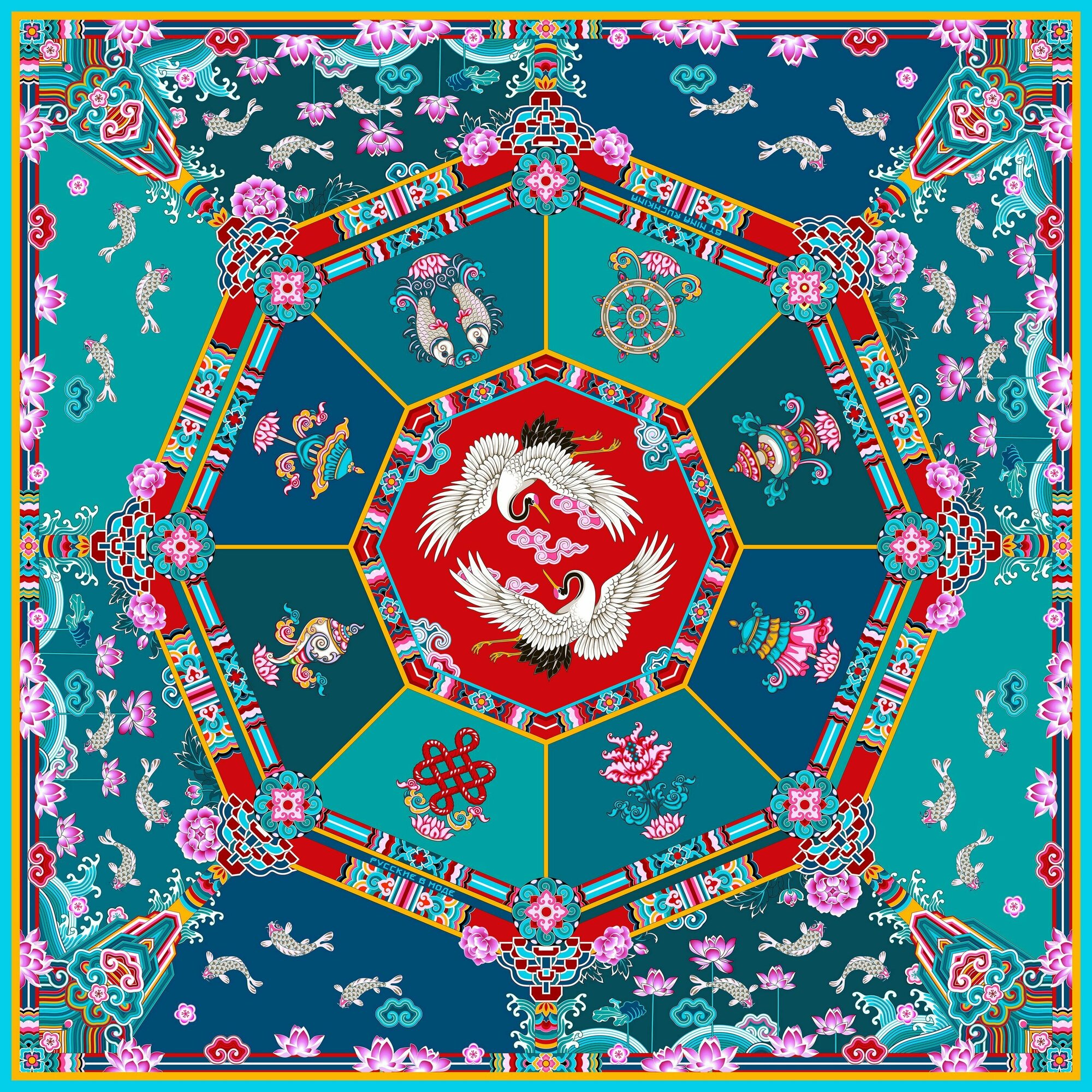 Купить Платок Русские в моде by Nina Ruchkina для женщин,90х90 см, зеленый