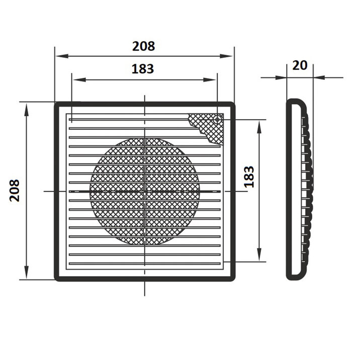 Вентиляционная решетка ERA 2121П 208 x 208 мм