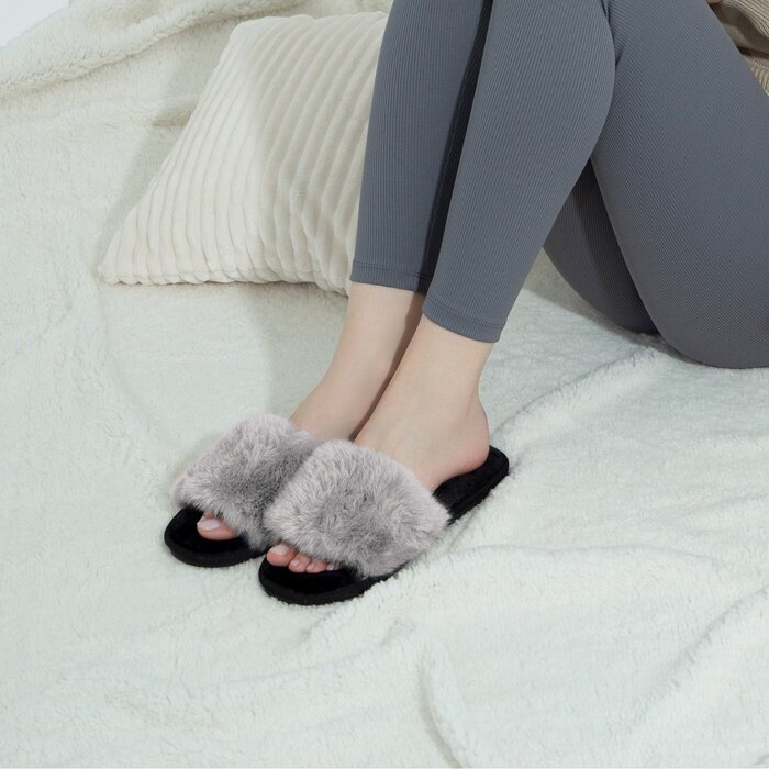 Меховые женские домашние тапочки с открытым носом размер 39-40, цвет серый