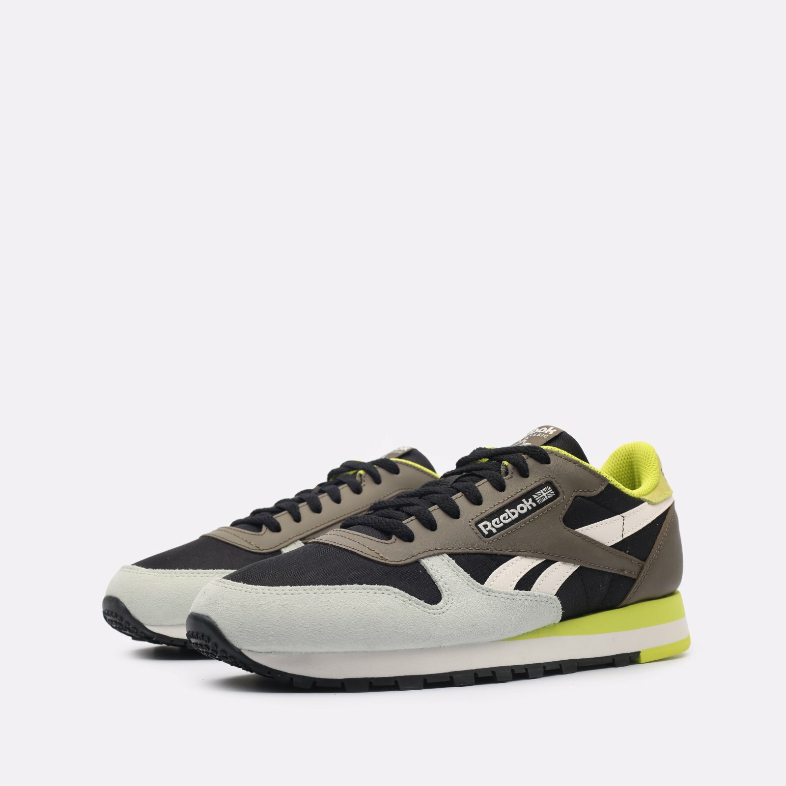 Сникеры Reebok унисекс, Размер:12, Цвет:черный/бежевый/зеленый, Модель:CLASSIC LEATHER