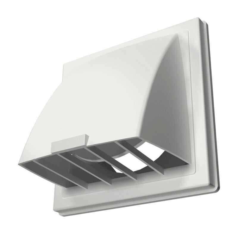 1515К10ФВ, Выход стенной вытяжной с обратным клапаном 150х150 с фланцем D100, ASA, белый