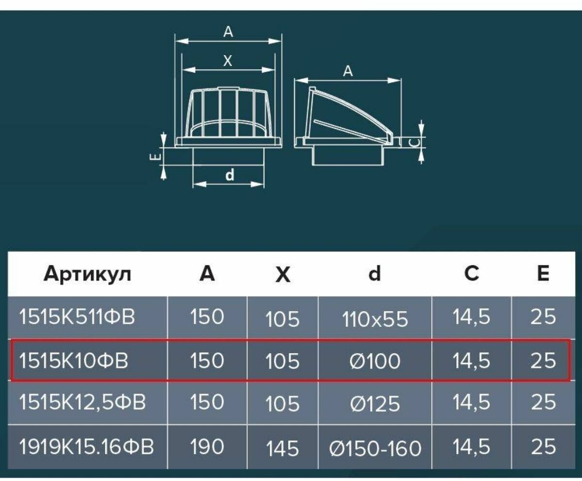 Стенной выход ЭРА с обр.клап. 1515К10ФВ терр