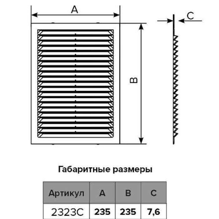 Решетка вентиляционная Era 2323С, ABS-пластик, 234 x 234 мм