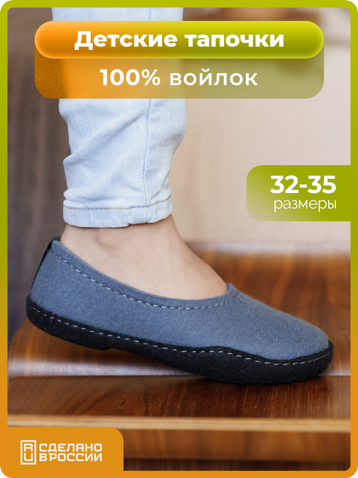 Тапочки HOLTY Хатанга Кидс, размер 35, оранжевый