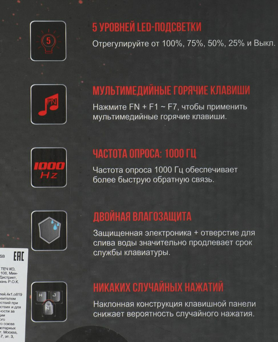 | Дополнительная информация | резиновые кнопки WASD, специальный дизайн кнопок от двойного нажатия |