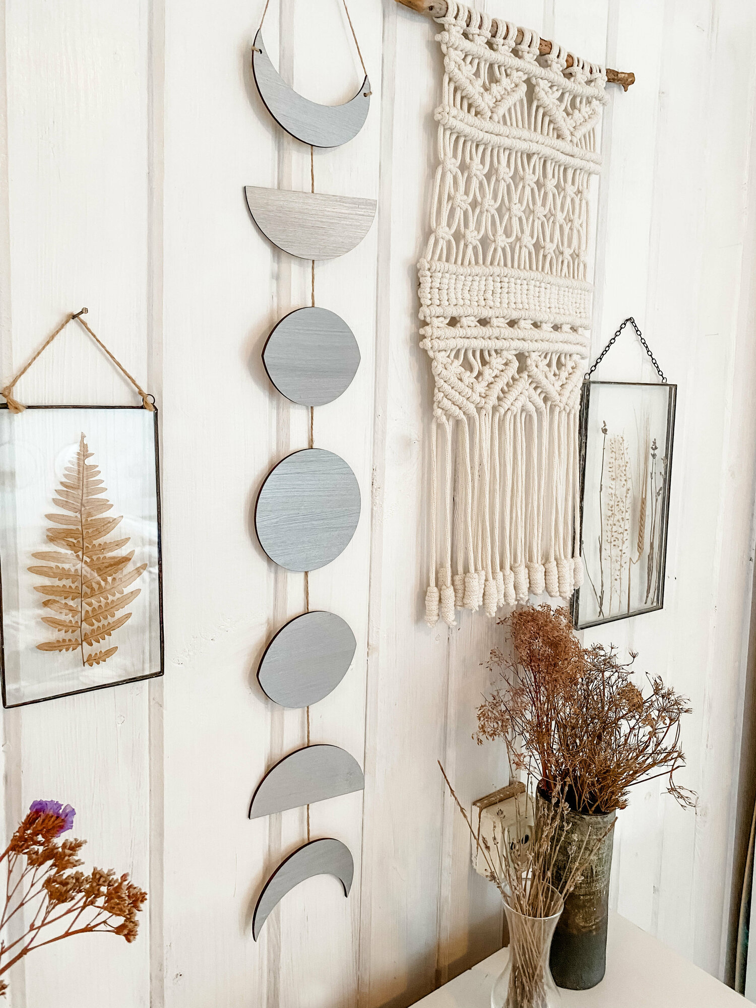 Серебряный деревянный Бохо декор ''Фазы Луны''