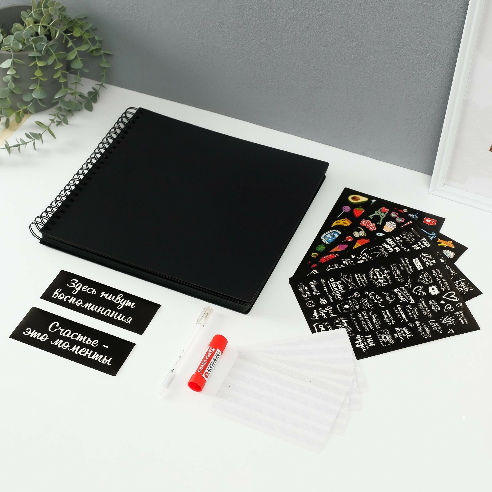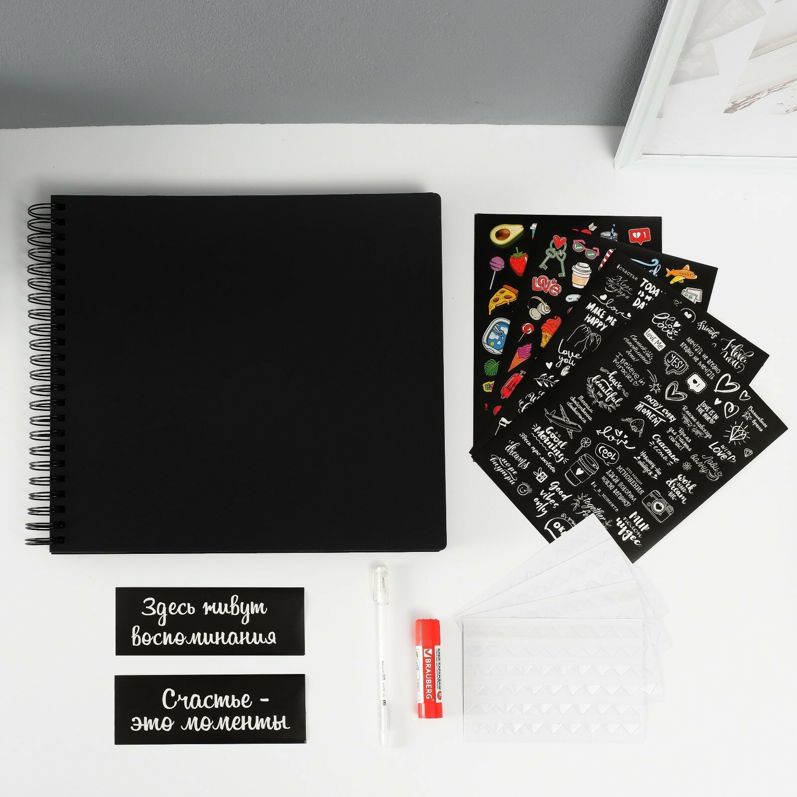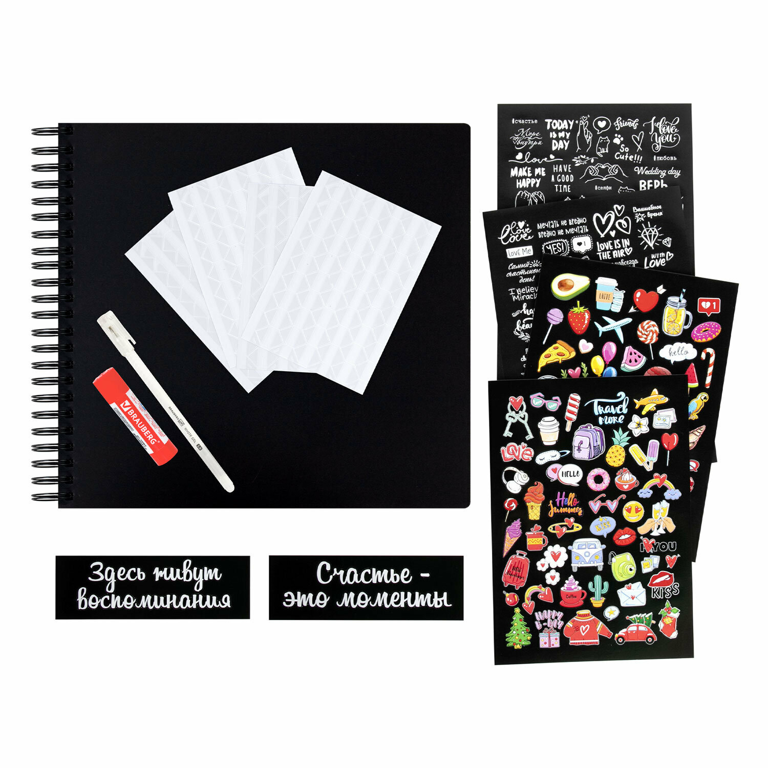 Набор для создания фотоальбома Brauberg "Счастье - это моменты", 24 листа, 22х30 см, уголки, стикеры, ручка, клей