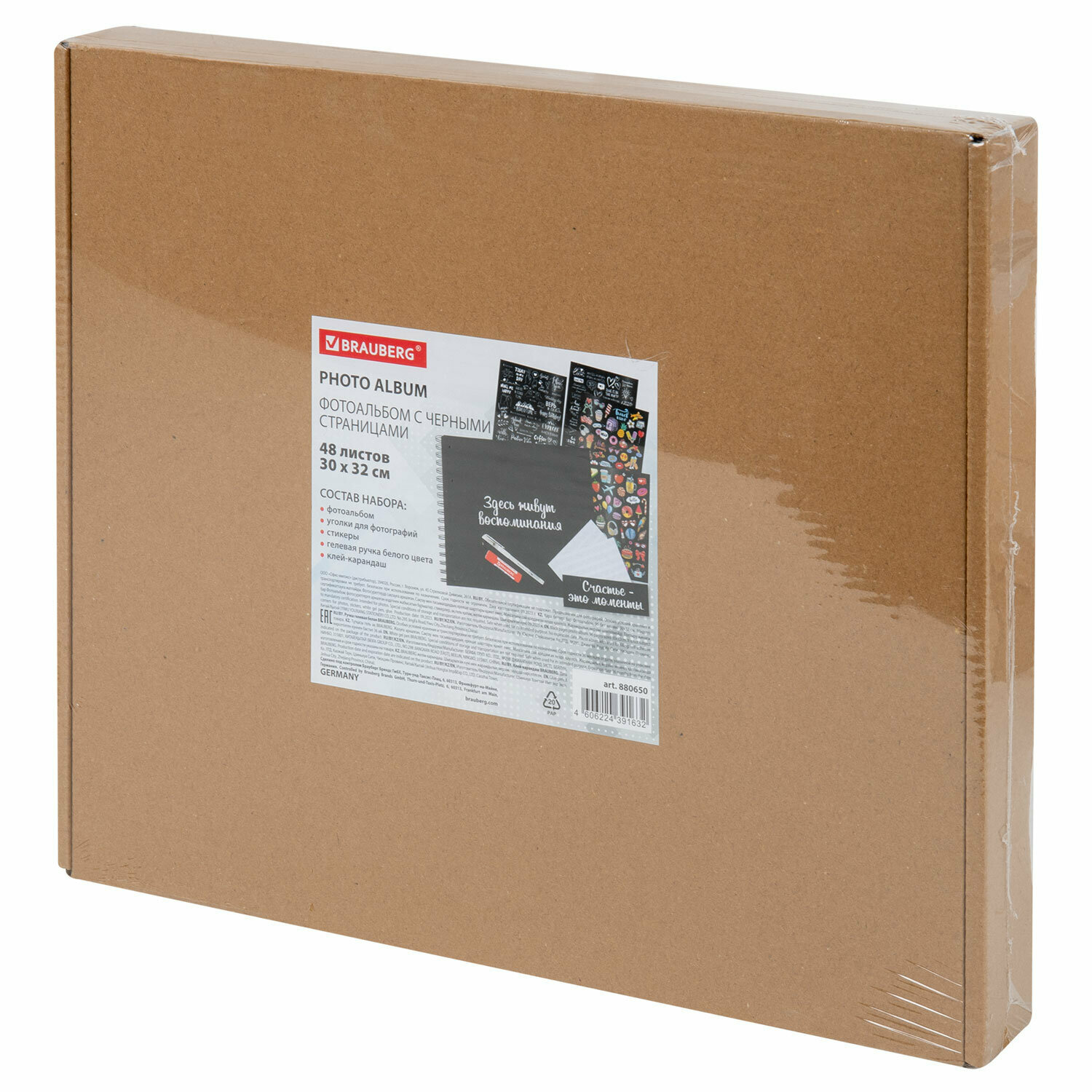 СохранитьФотоальбом Brauberg 30х32 см, 48 черных листов, уголки, стикеры, ручка, клей, Black Line, 880650 интересное: