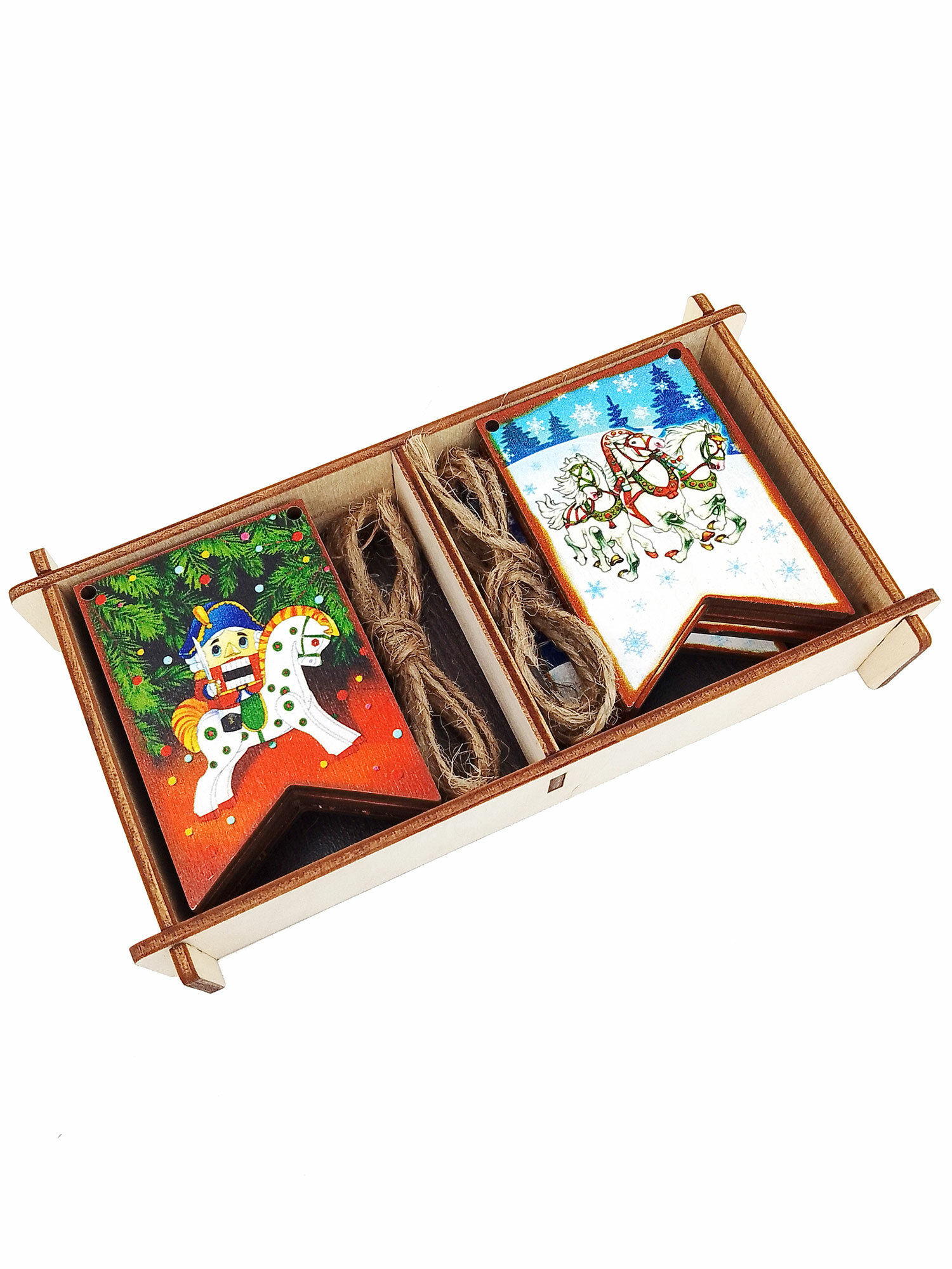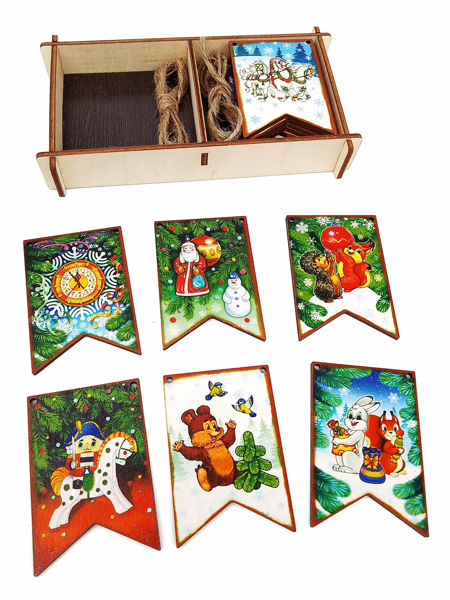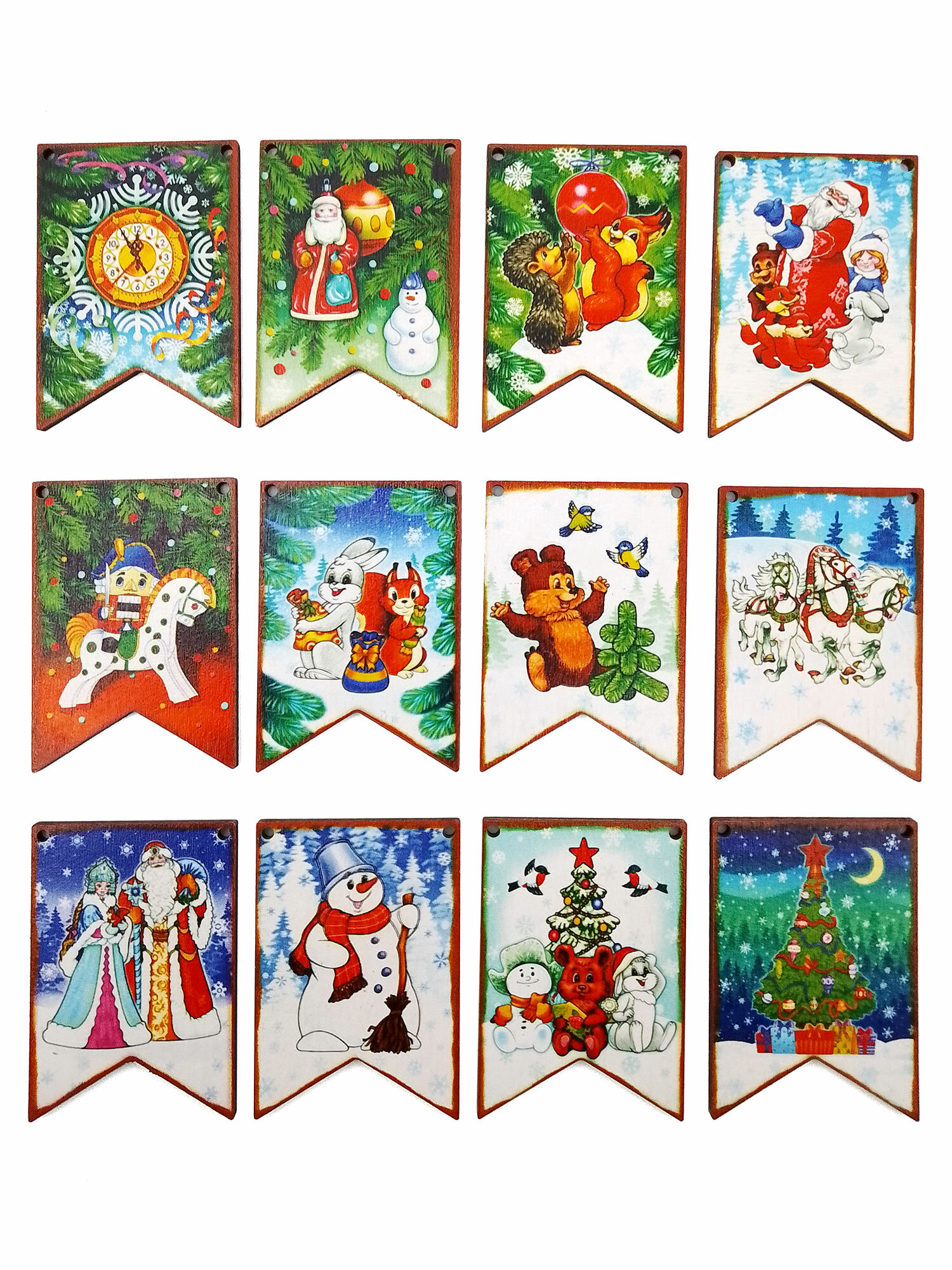 Набор Новогодние флажки (дерево) (7х4,5 см) 12 дет. арт.8582 /34 (Новый год)