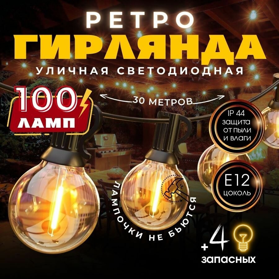 Ретро гирлянда уличная 30 метров 100 ламп интересное: