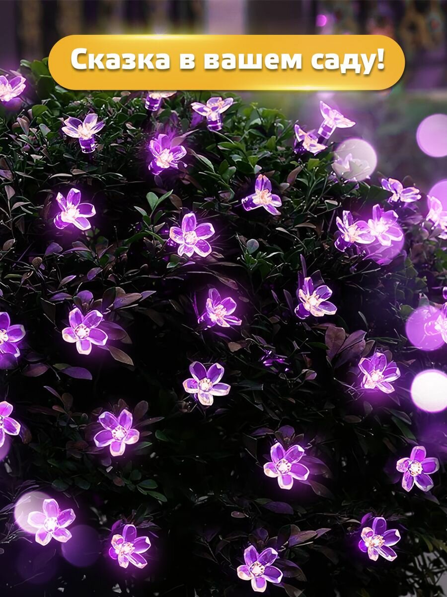 Гирлянда уличная на солнечной батарее Цветы фотозона 6.5м