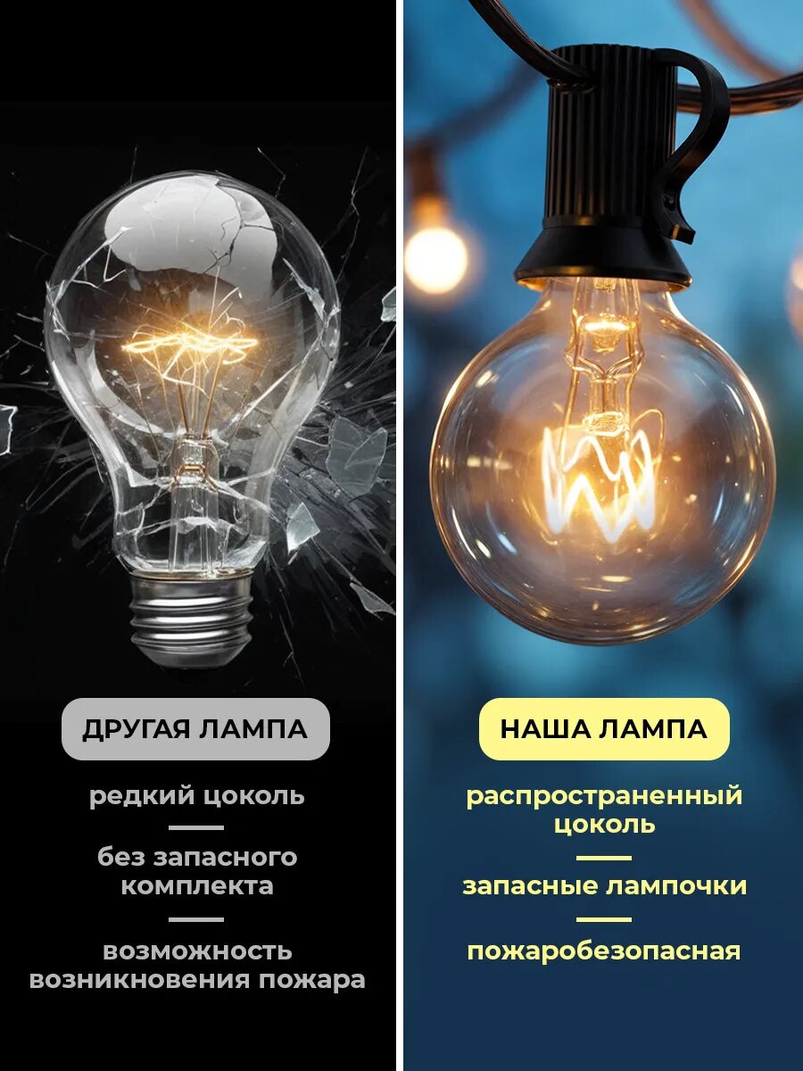 СохранитьЭлектрогирлянда уличная ретро винтаж 15 м Classmark, садовая гирлянда на 50 ламп накаливания, теплый желтый свет, питание От сети 220В, 1 шт интересное: