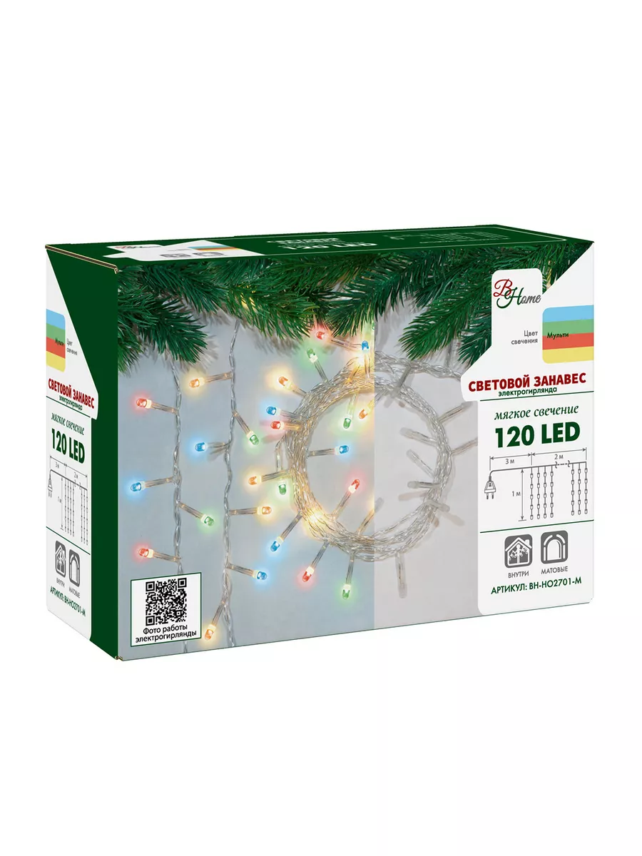Гирлянда B&H BH-HO2701-M, 2 х 1 м, 120 ламп, мульти/прозрачный провод