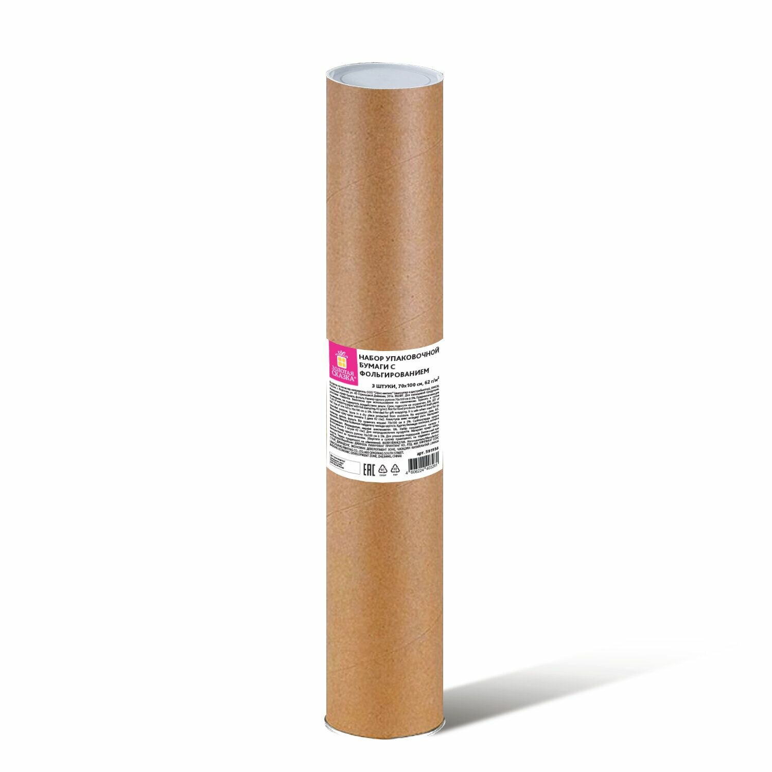 Упаковочная бумага 70х100 см для подарков мелованная, набор 3 штуки, 3 дизайна, подарочная упаковка, Золотая Сказка, For Women, 592065