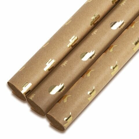 Упаковочная бумага 70х100 см для подарков крафтовая, набор 3 штуки, 3 дизайна, подарочная упаковка, Золотая Сказка, Kraft Casual, 592063