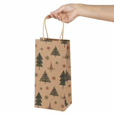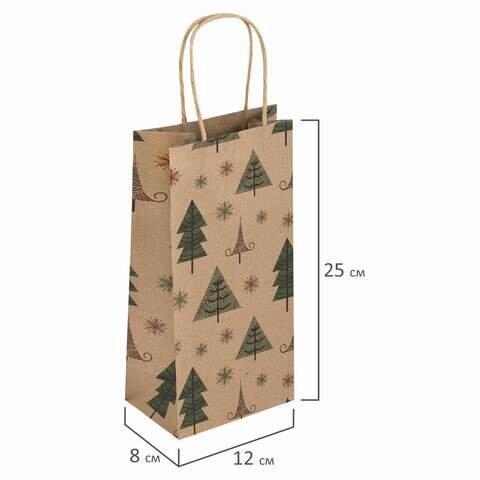Пакет подарочный комплект 10 штук 12x8x25см, "Kraft Xmas Tree", золотая сказка, 591963