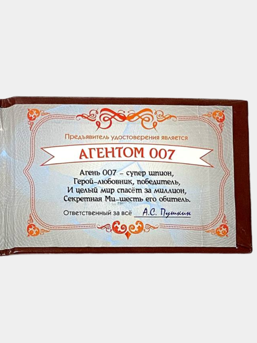 Шуточное удостоверение, корочка
