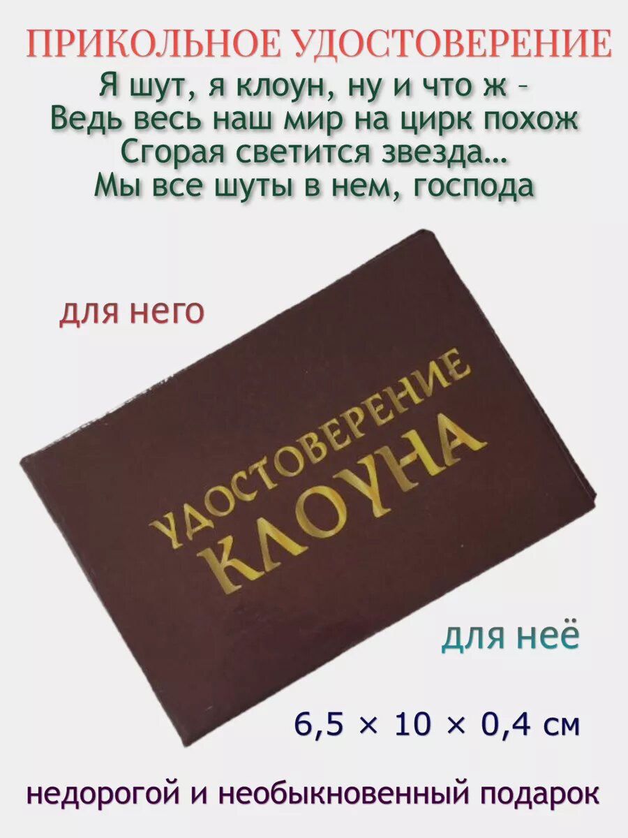 СохранитьШуточное удостоверение "Клоун", корочка интересное: