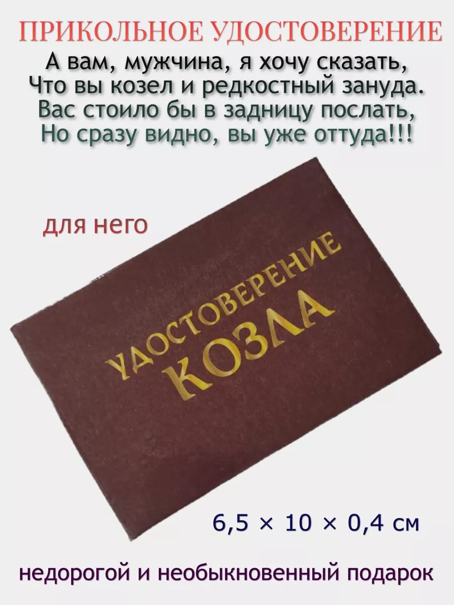 Купить Шуточное удостоверение "Козла", корочка