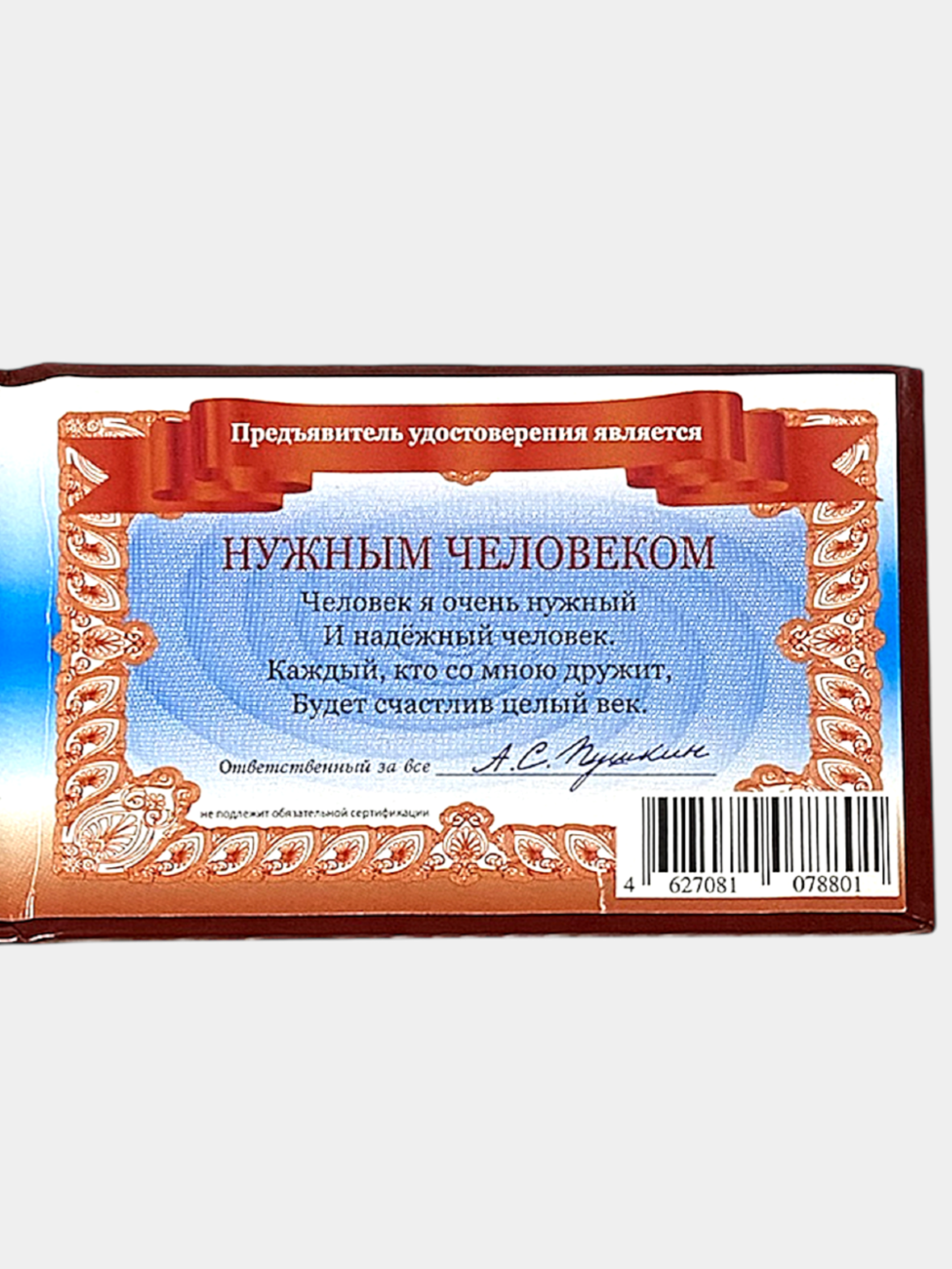 СохранитьШуточное удостоверение "Нужного человека", корочка интересное: