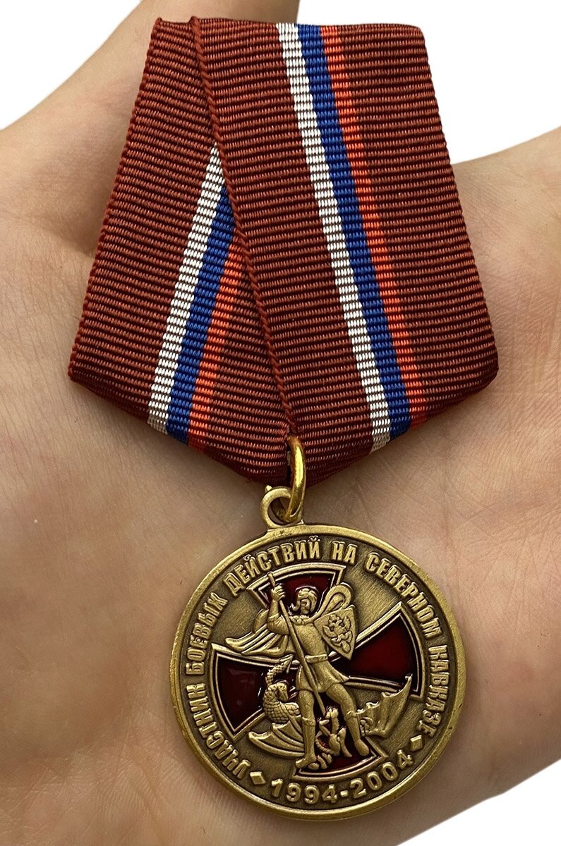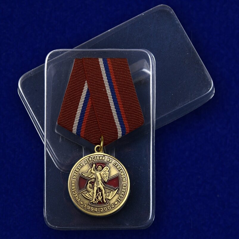 Купить Медаль "Участник боевых действий на Северном Кавказе" 1994-2004, муляж, латунь, диаметр медали 32мм