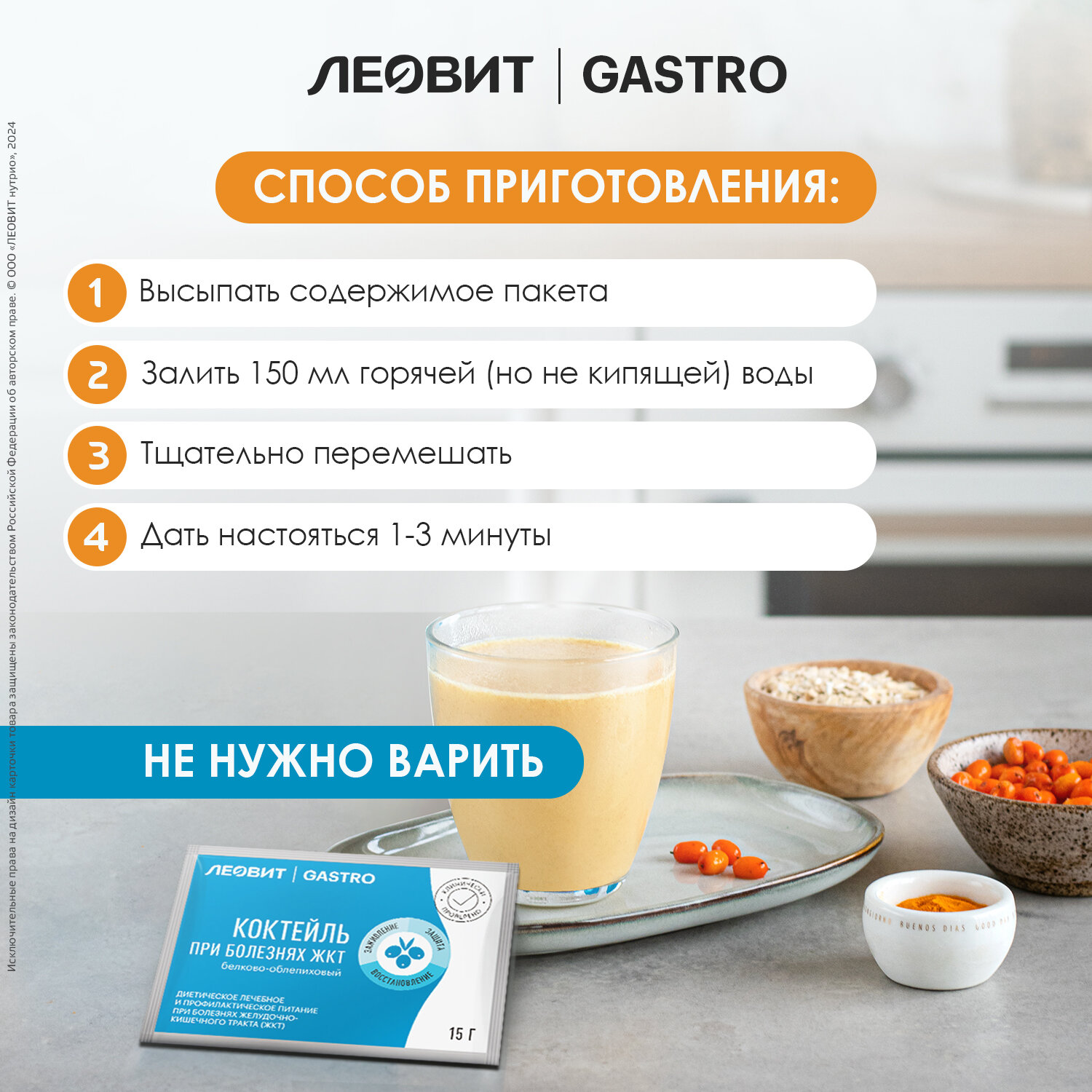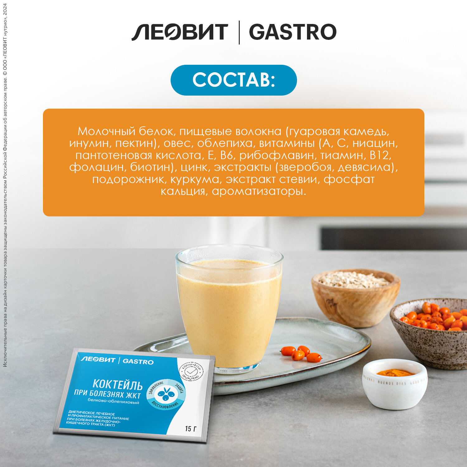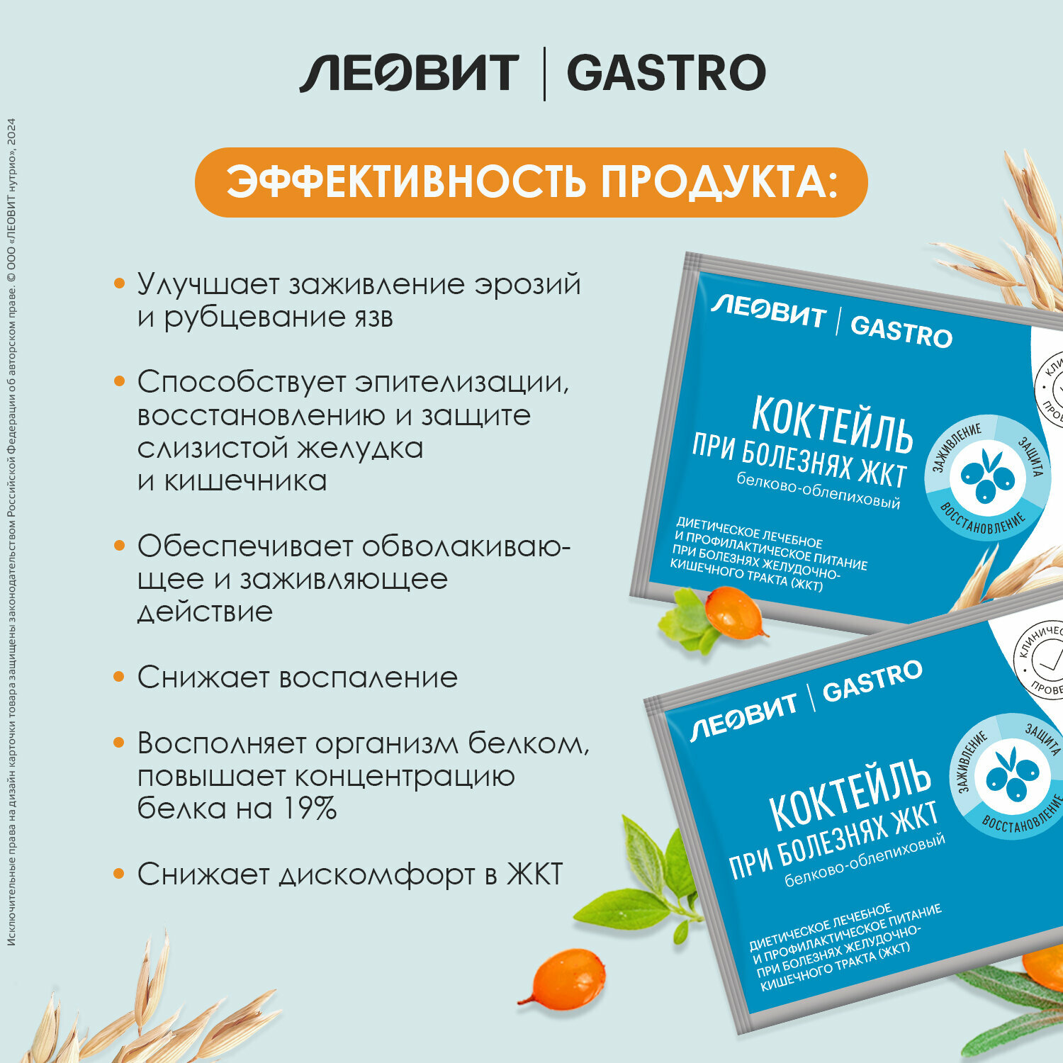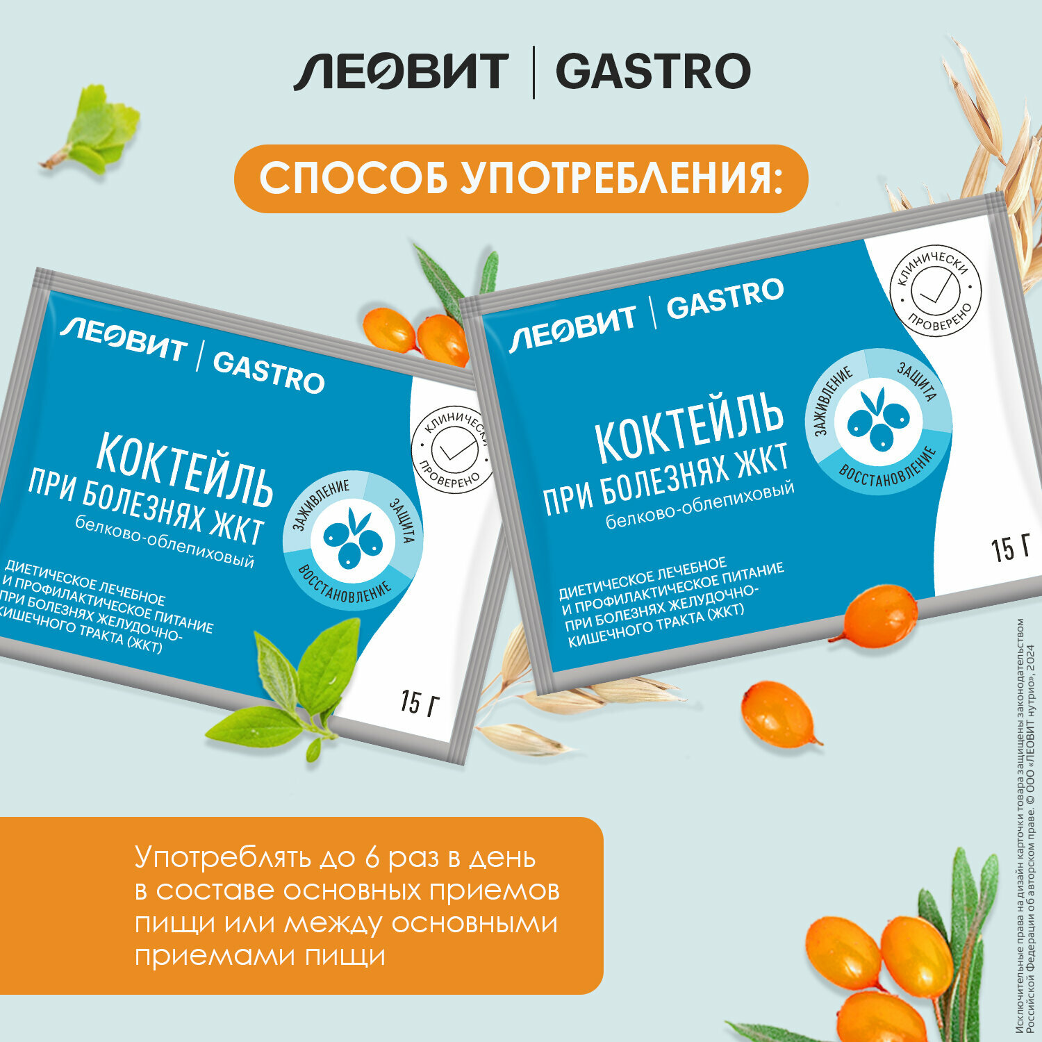 Коктейль при болезнях ЖКТ белково-облепиховый леовит Gastro . Шоубокс 20 шт. по 15 г.