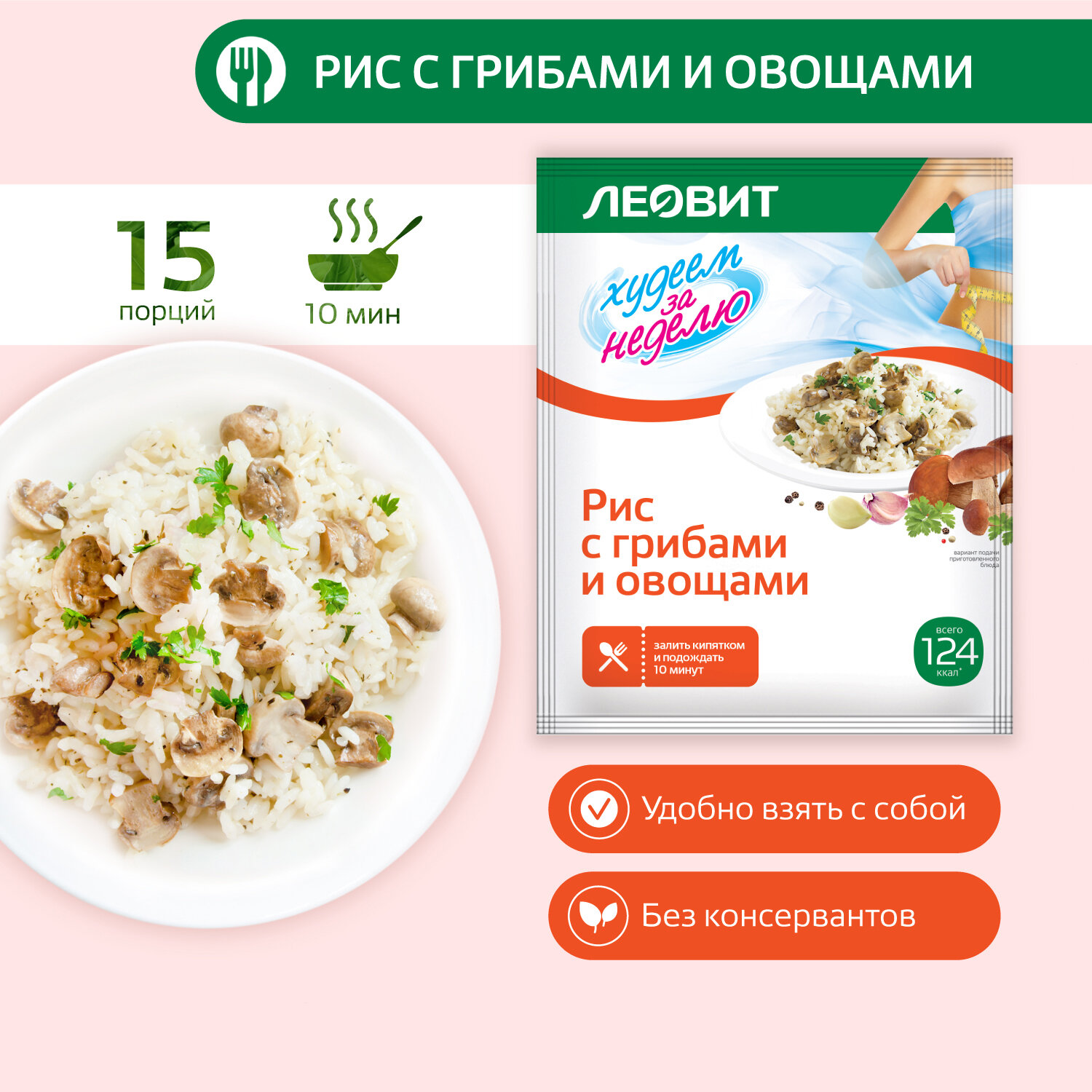 Рис с грибами и овощами диетический 15 шт по 40 г Худеем за неделю Леовит для похудения быстрого приготовления интересное: