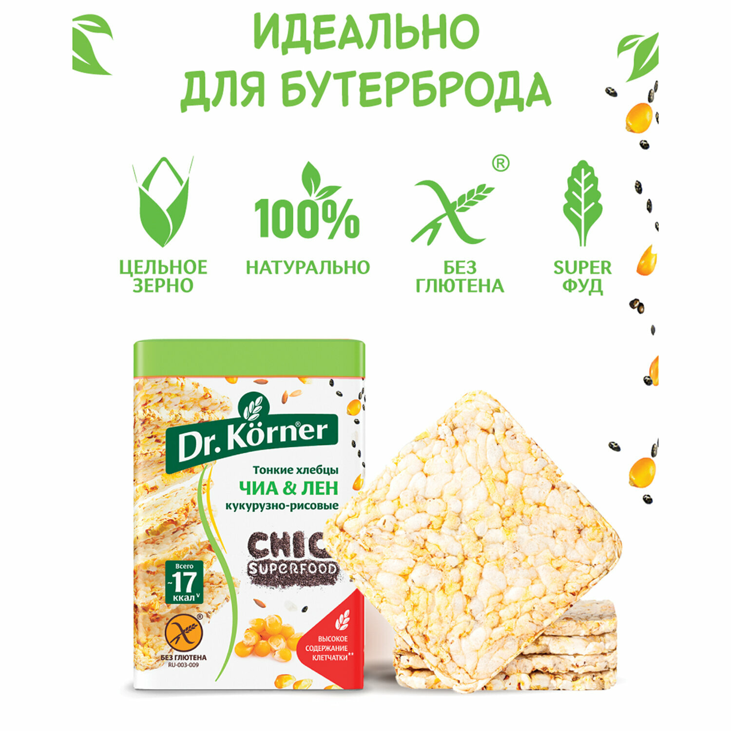 Хлебцы хрустящие Кукурузно-рисовые с чиа и льном Dr.Korner 100 гр интересное: