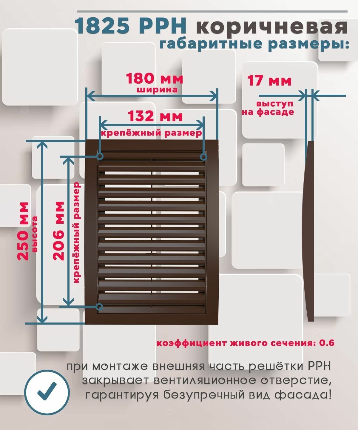 1825РРН, Решетка вентиляционная наружная, разъемная 180x250, ASA-пластик