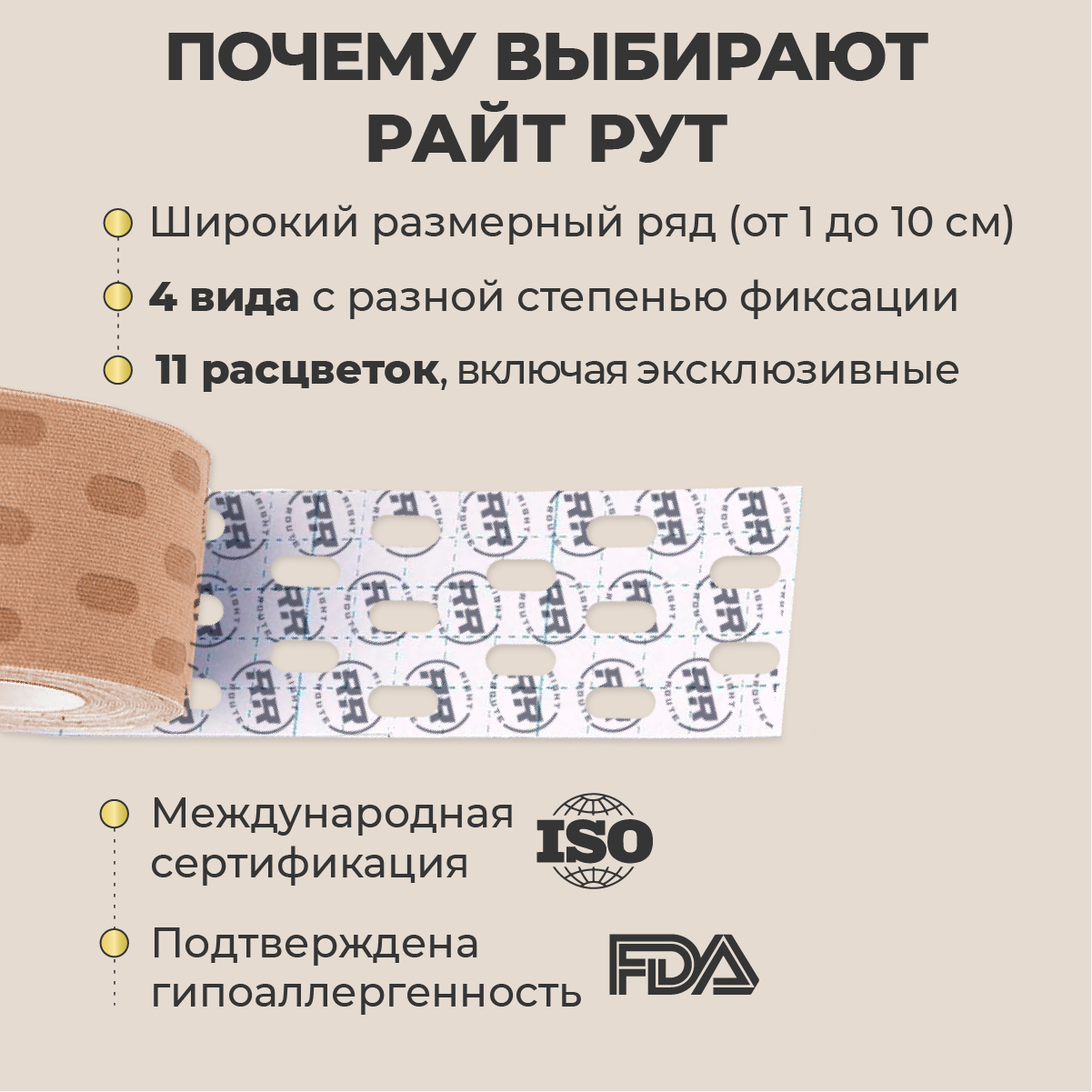 Тейп перфорированный, лимфодренажный. Кинезио тейп спортивный, от морщин?для тела, снятия отеков и шеи, лента для лица ,5см Х 5 м, RIGHT ROUTE