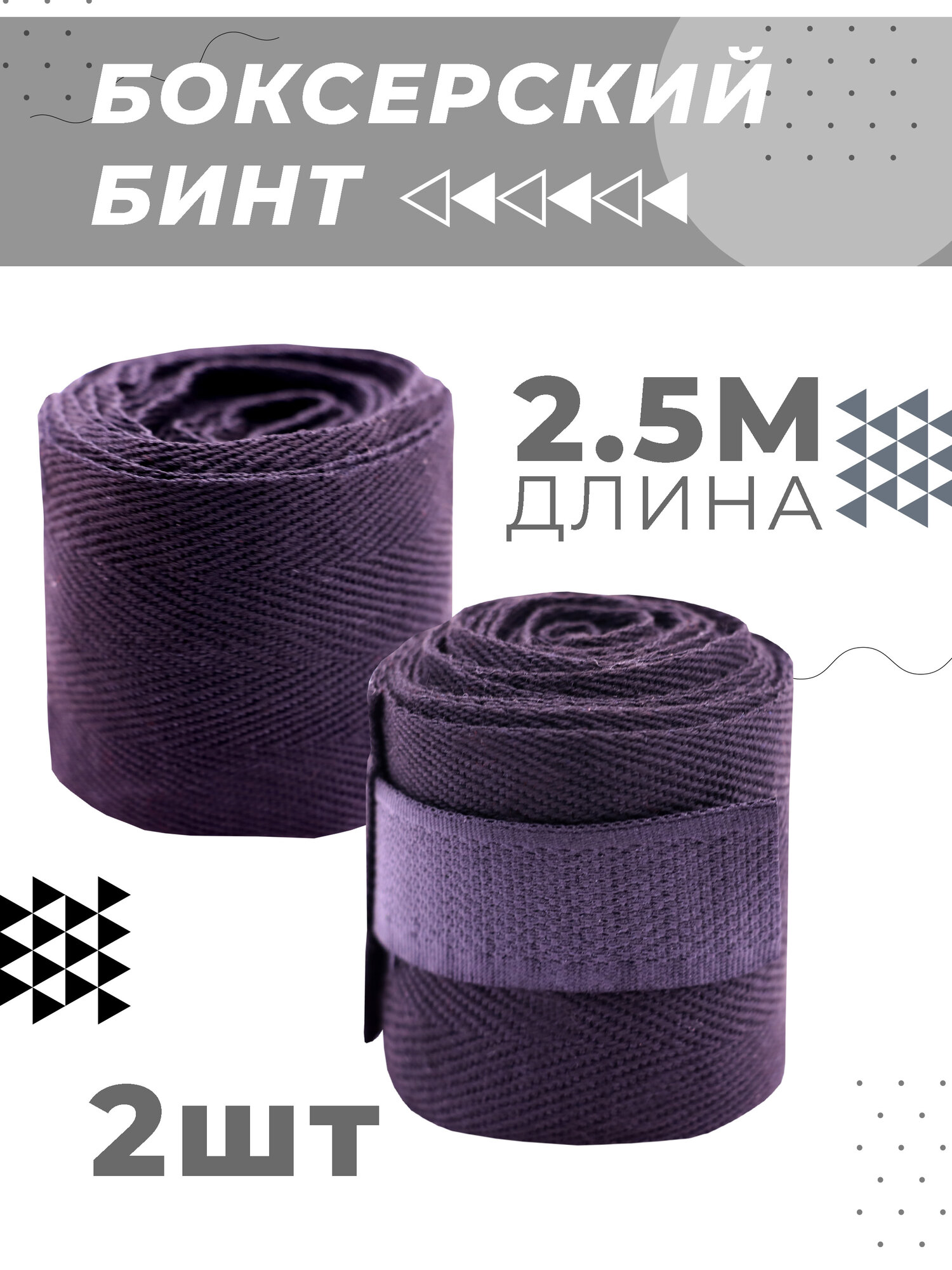 Бинты для бокса Boomshakalaka, 2,5 м, хлопок/нейлон, 2 шт., цвет черный