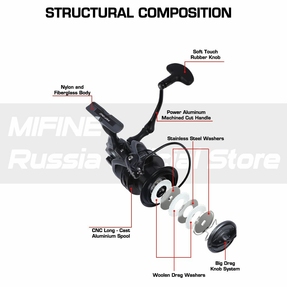 Катушка рыболовная MIFINE CAVALIER CARP 9000F 7+1подшипник (4:4.1), для спиннинга, для карповой ловли, для фидерной ловли интересное: