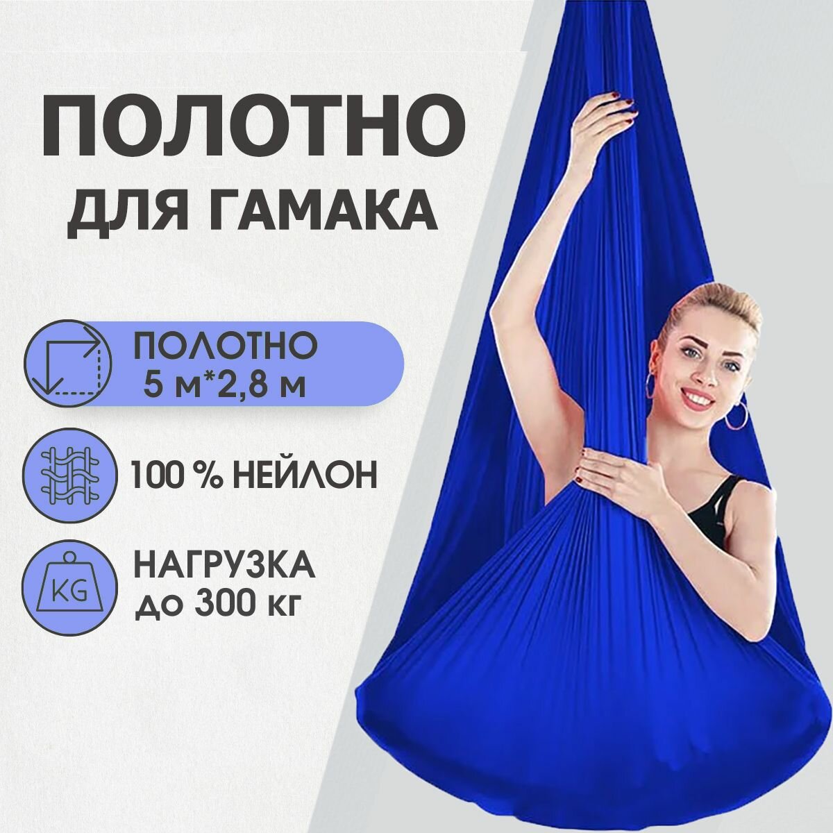 Полотно 5*2,8 м для йога гамака Rekoy, голубое