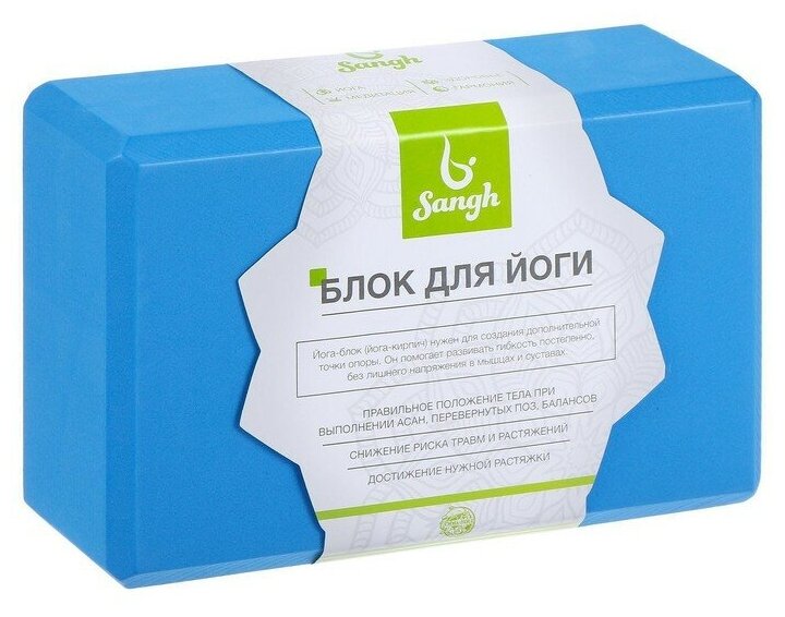 Блок Sangh, для йоги, размер 23 х 15 х 8 см, вес 180 г, цвет синий