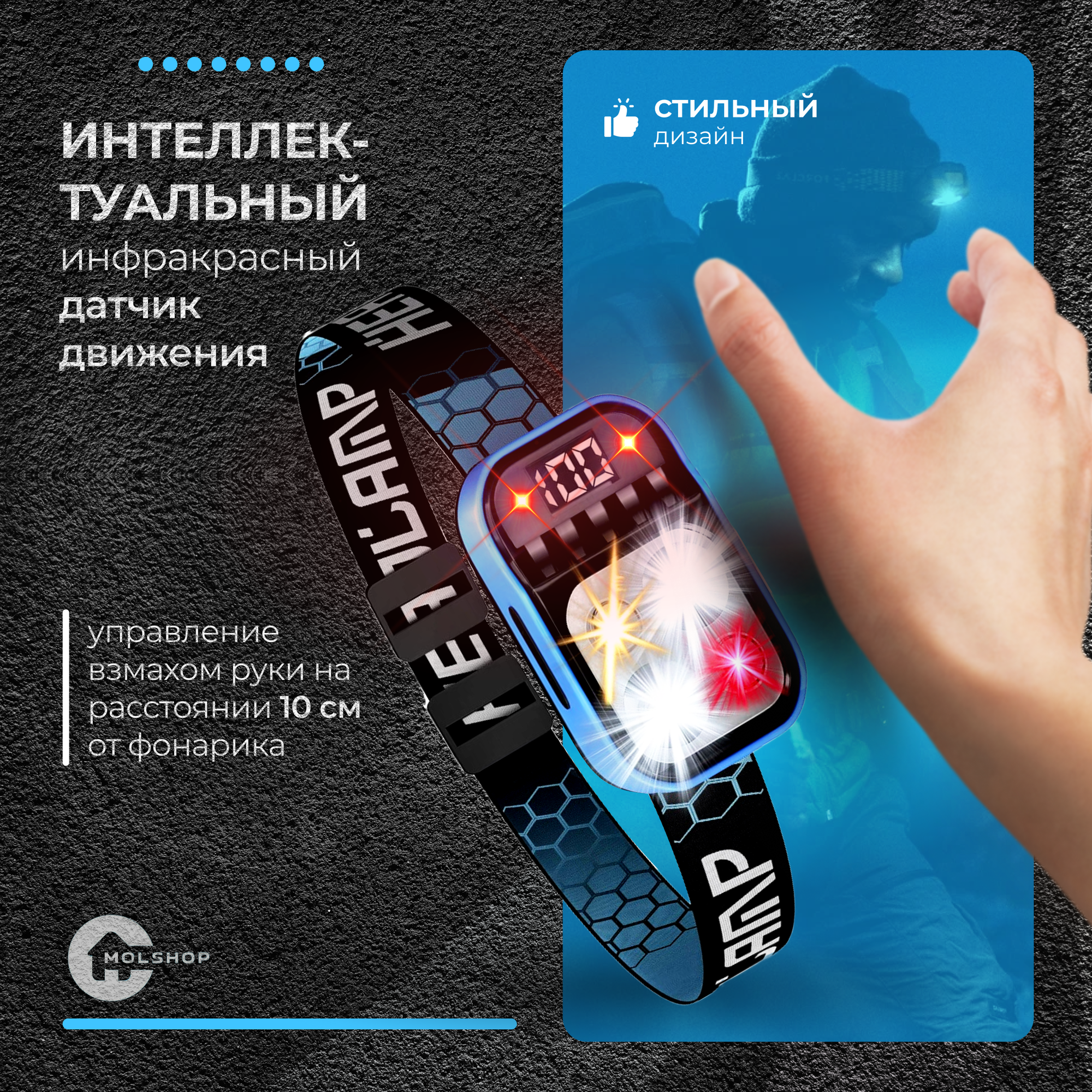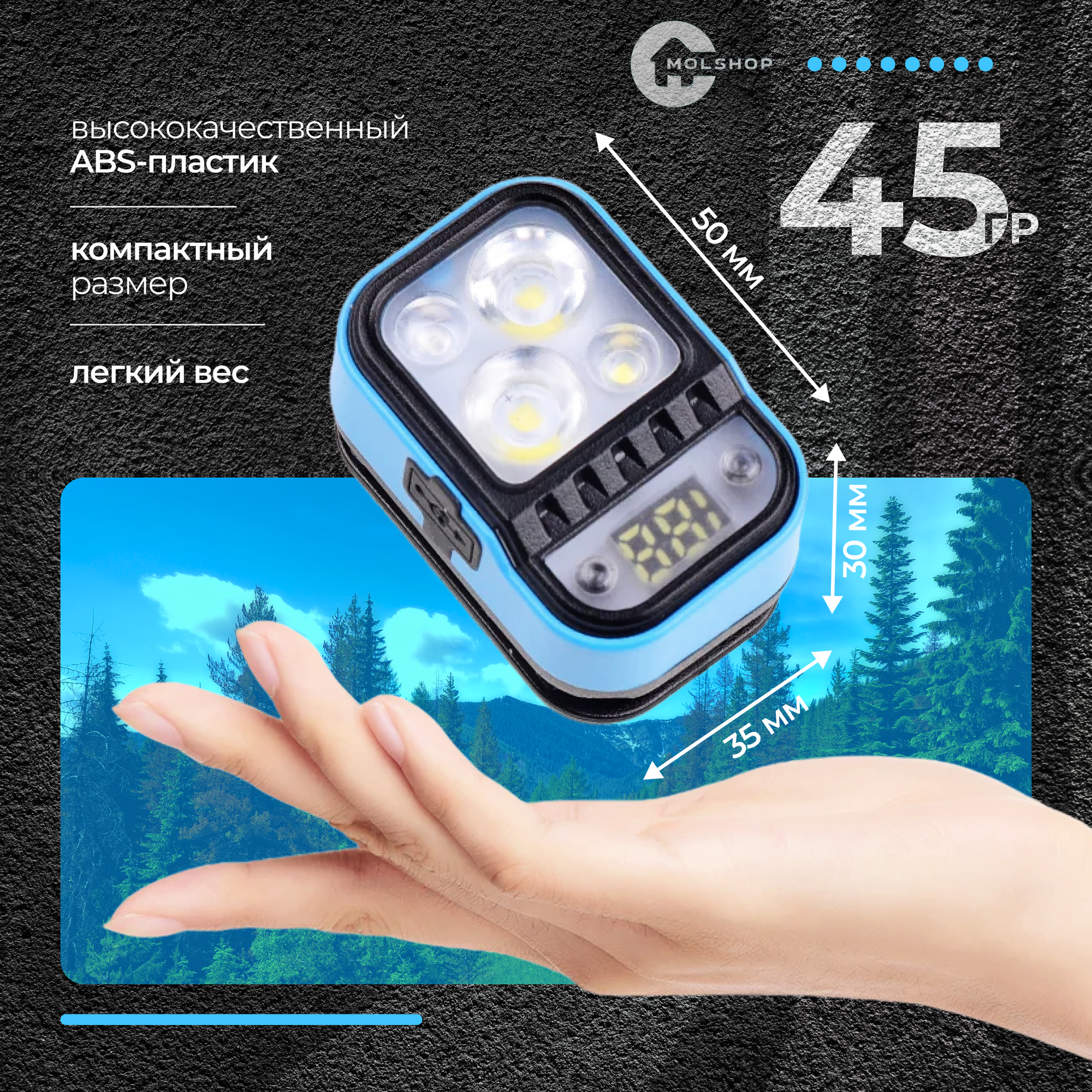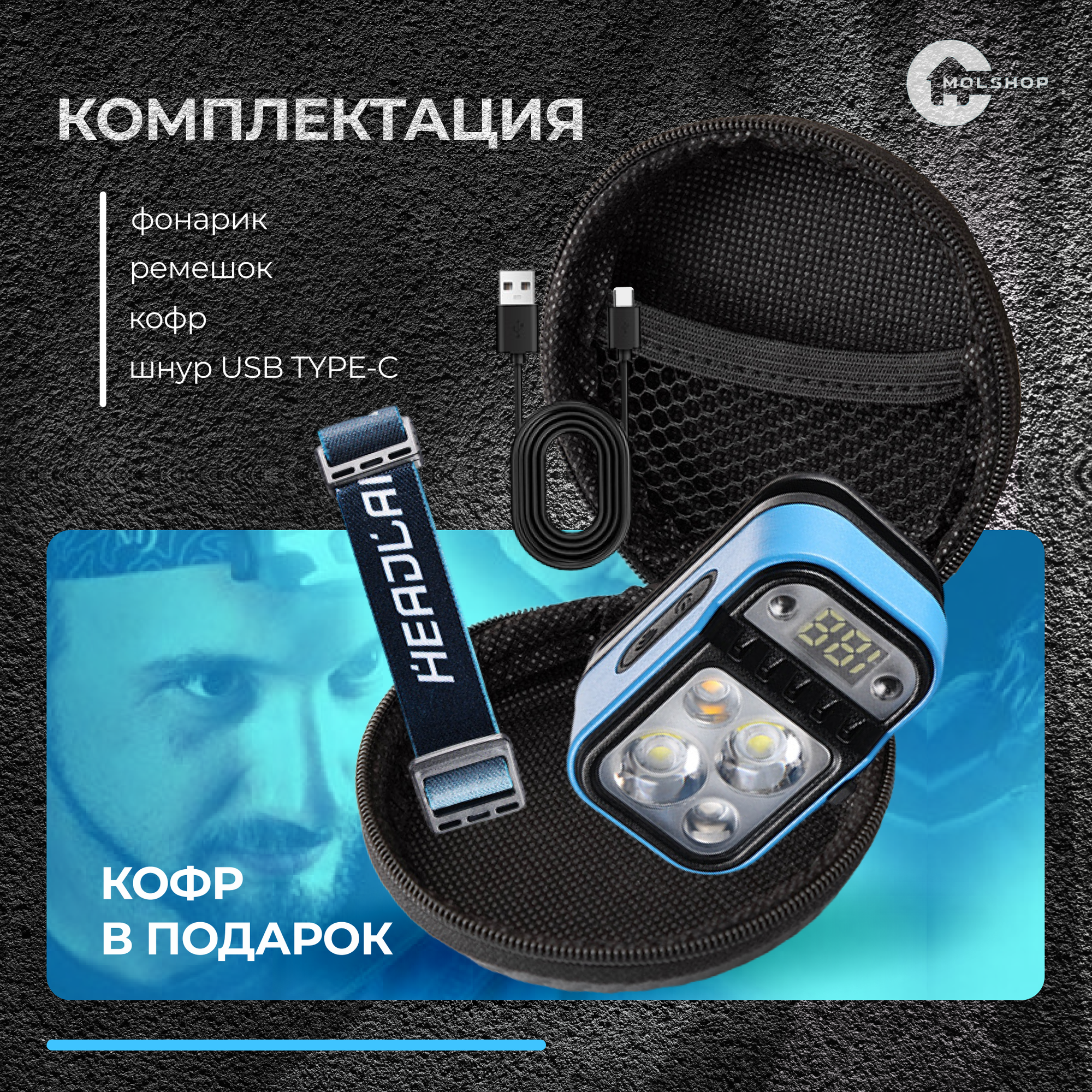 Фонарик налобный голубой/Фонарь аккумуляторный интересное: