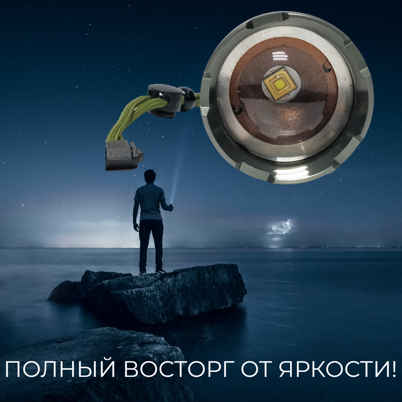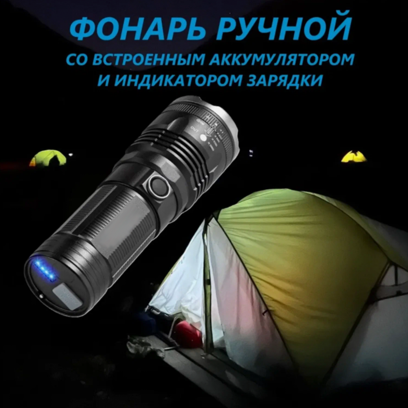 Ручной фонарь-прожектор P18 с современным светодиодом - TG, встроенный аккумулятор. интересное: