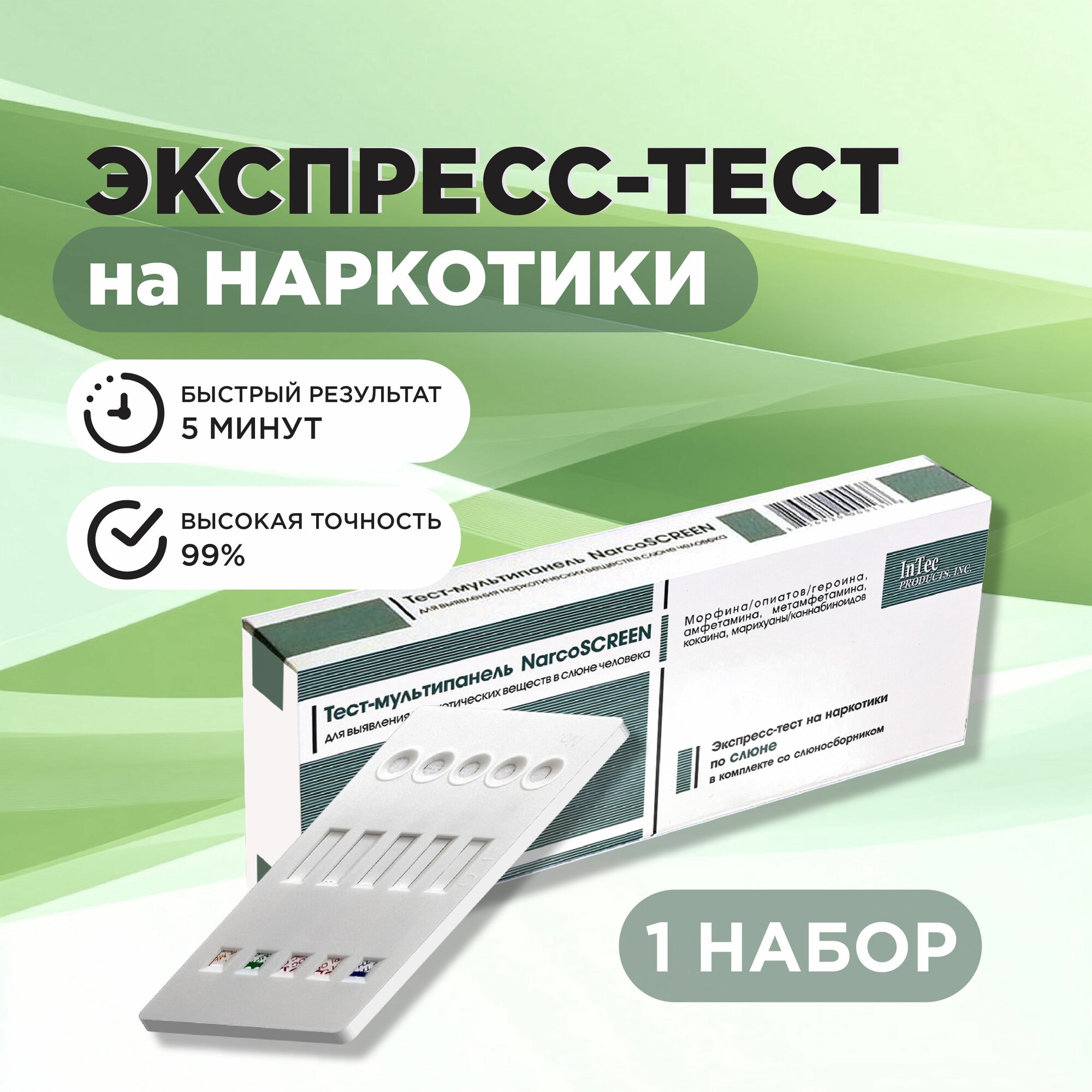 Тест -кассета NARCOSCREEN мультипанель (5 видов) в слюне