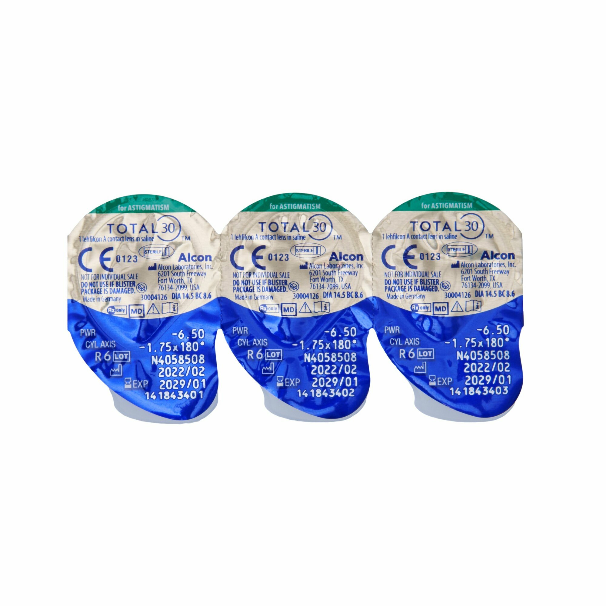 Купить Астигматические линзы ALCON Total 30 for astigmatism -1.75 / цилиндр -2.25 ось 170 3 линзы ежемесячные