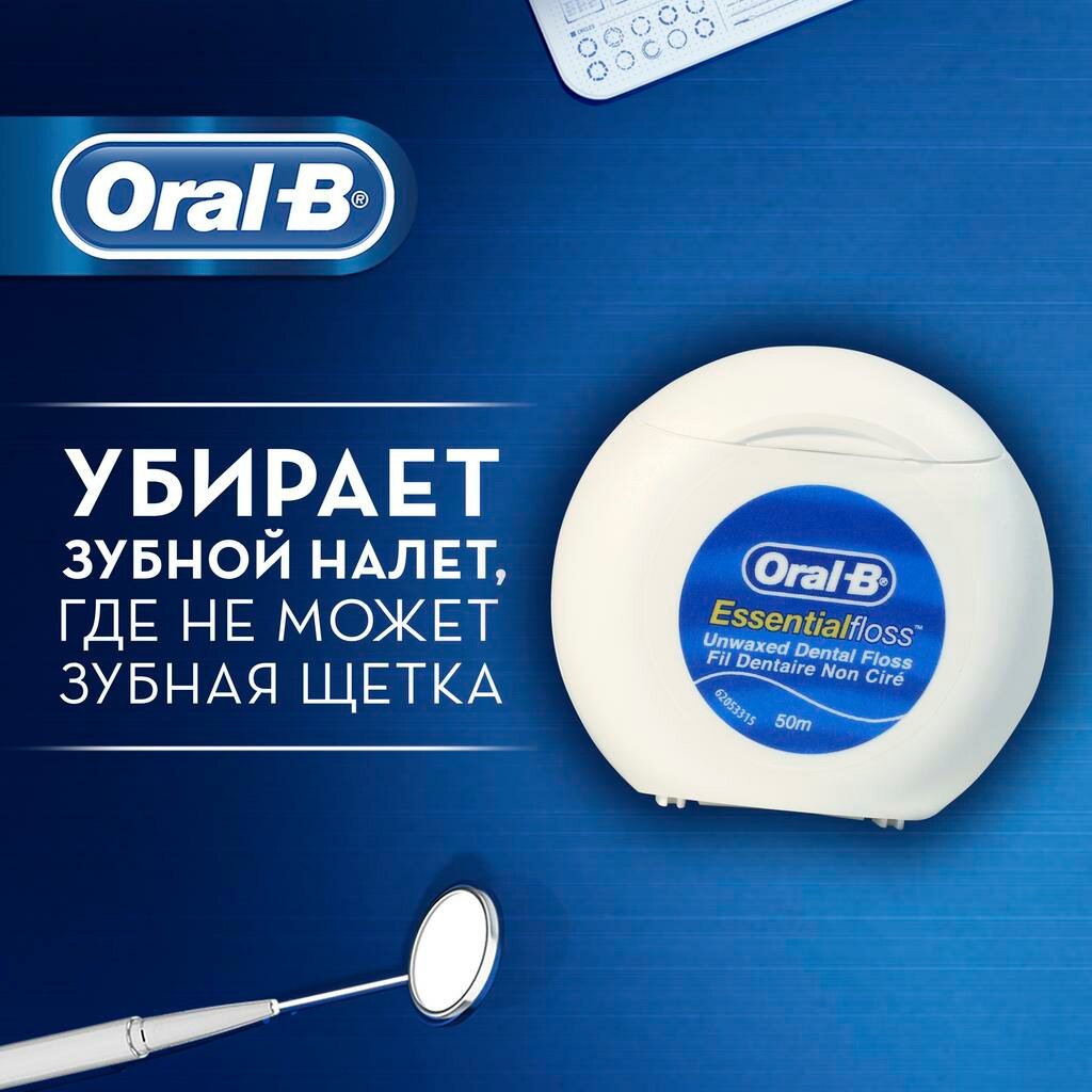 Зубная нить Oral-B Essential Floss Невощеная 50м (для взрослых, назначение: универсальное, катушка) интересное: