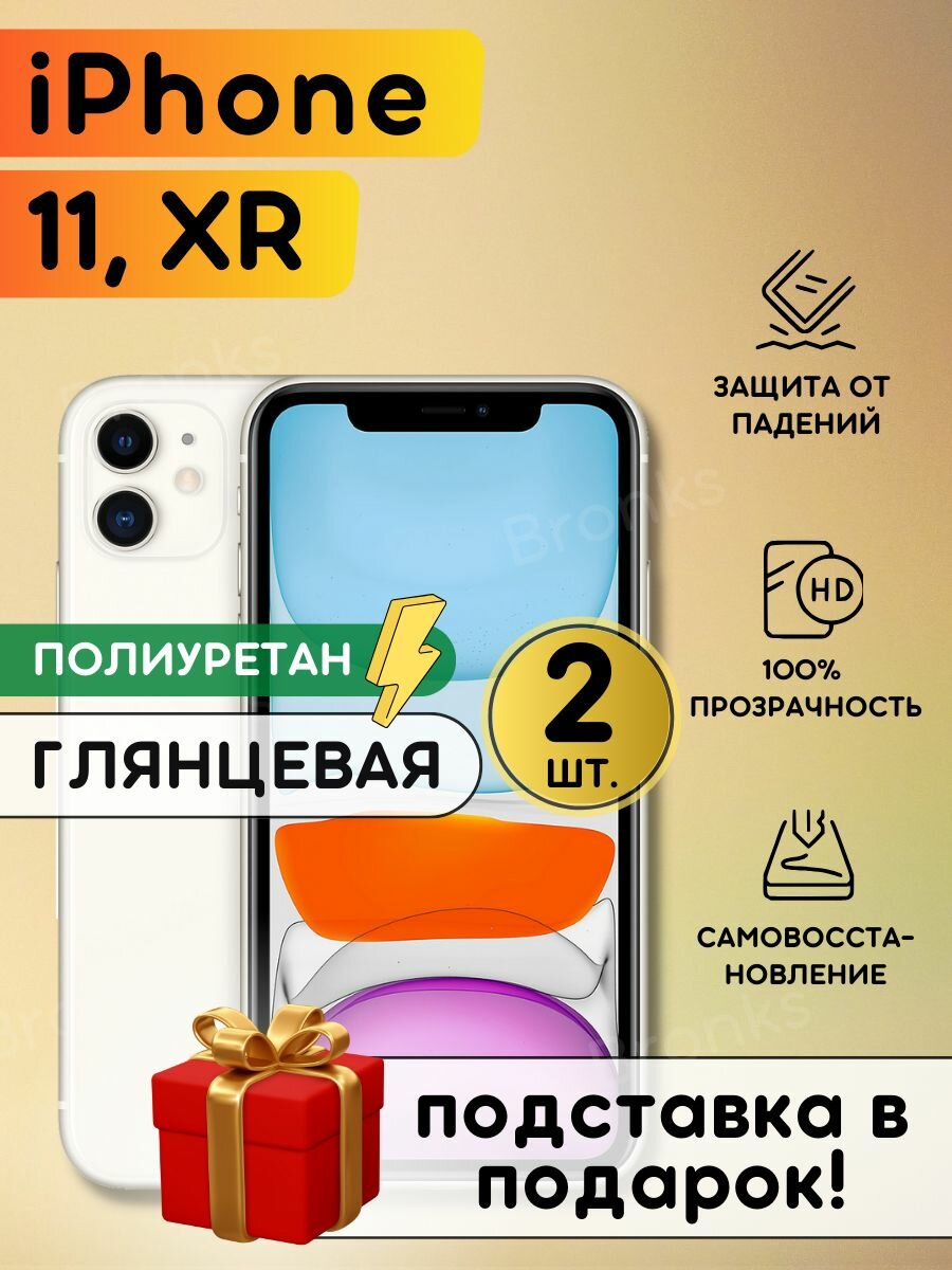 Купить Комплект из 2 шт. Гидрогелевая полиуретановая плёнка на iPhone 11, XR, пленка защитная на Айфон 11, Айфон Икс Эр