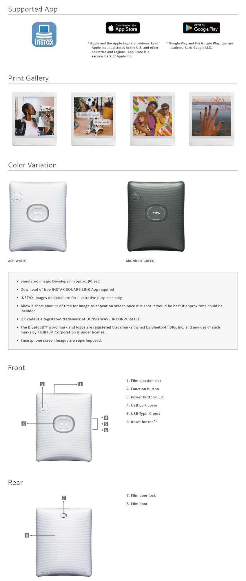FUJIFILM INSTAX SQUARE LINK принтер для фото Midnight Green Ash White, Ash White, Printer only интересное: