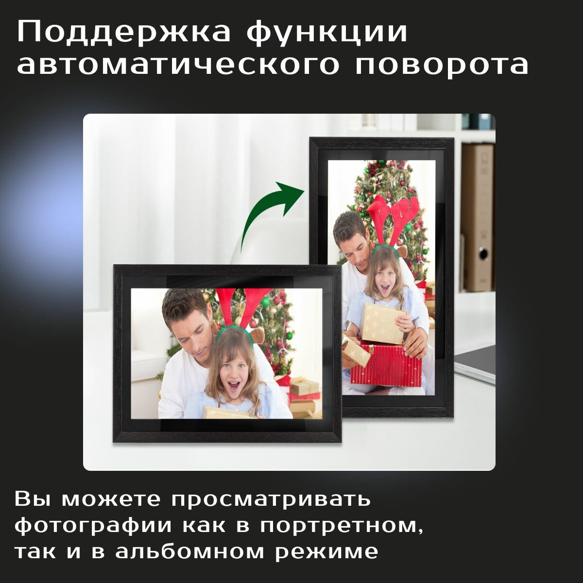 Умная Цифровая фоторамка FRAMEO, экран 10.1 дюйм. Цвет: Коричневое дерево TOUCH SCREEN SMART WI-FI Photo Frame Сенсорный экран, фото, видео и звук.1280x800 пикселей.