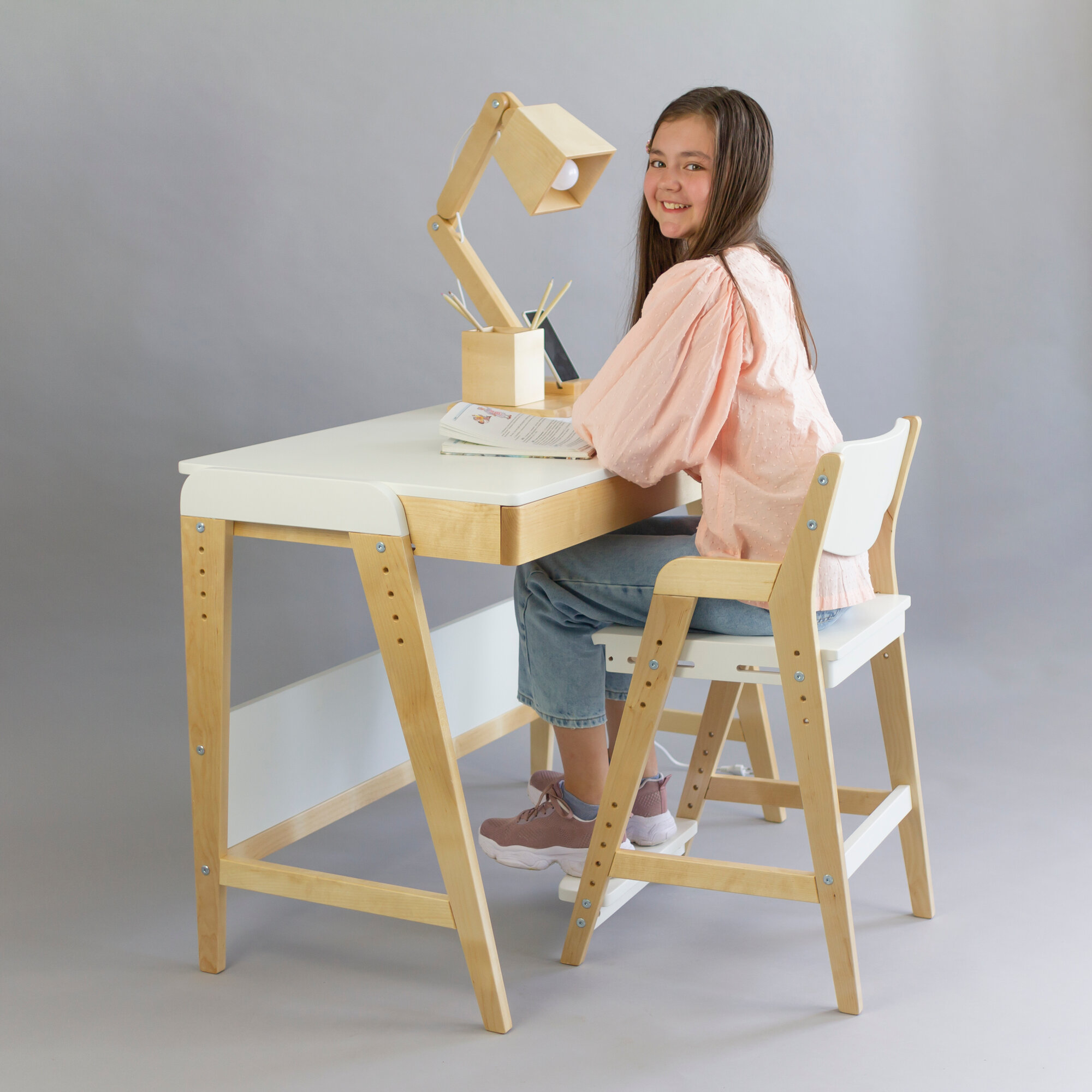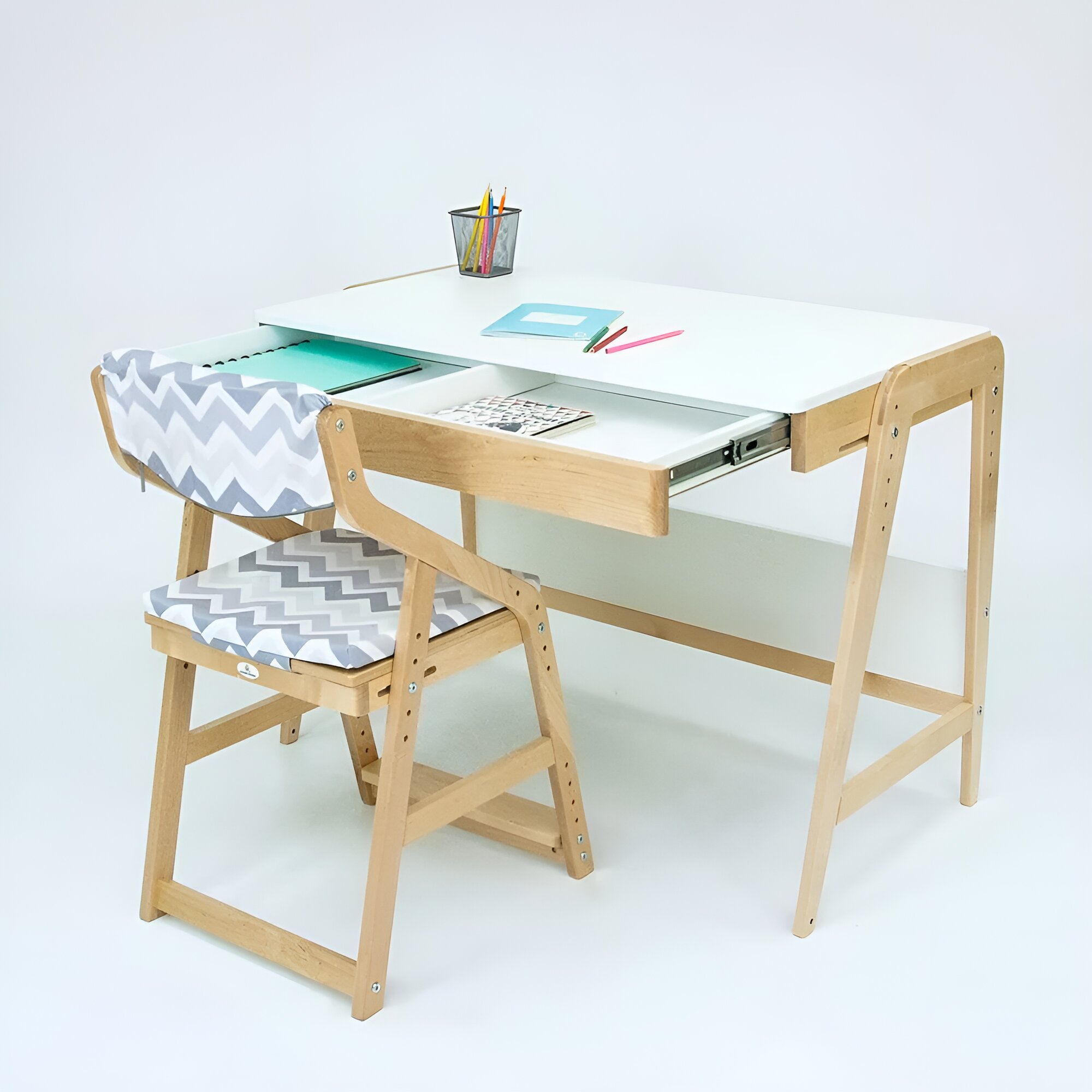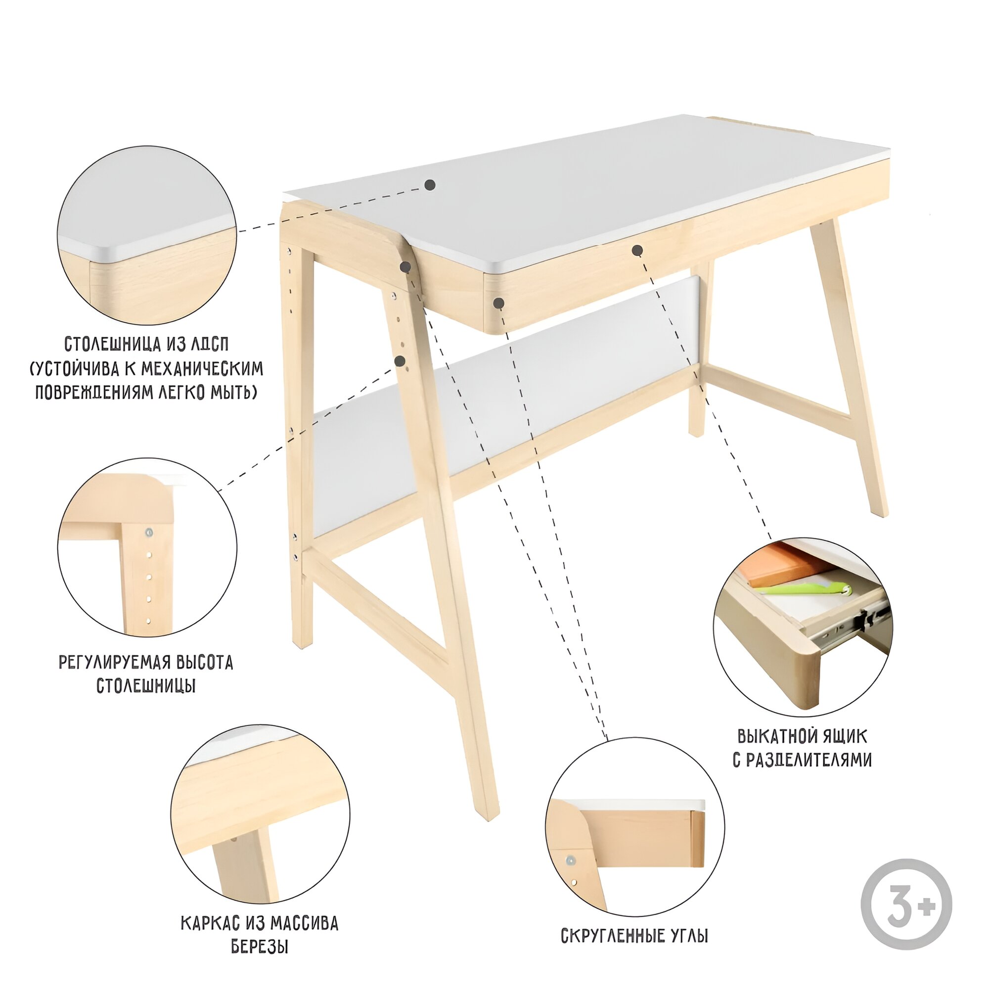 Стол детский растущий ВУДИ цв. комбо-белый с выдвижным ящиком интересное: