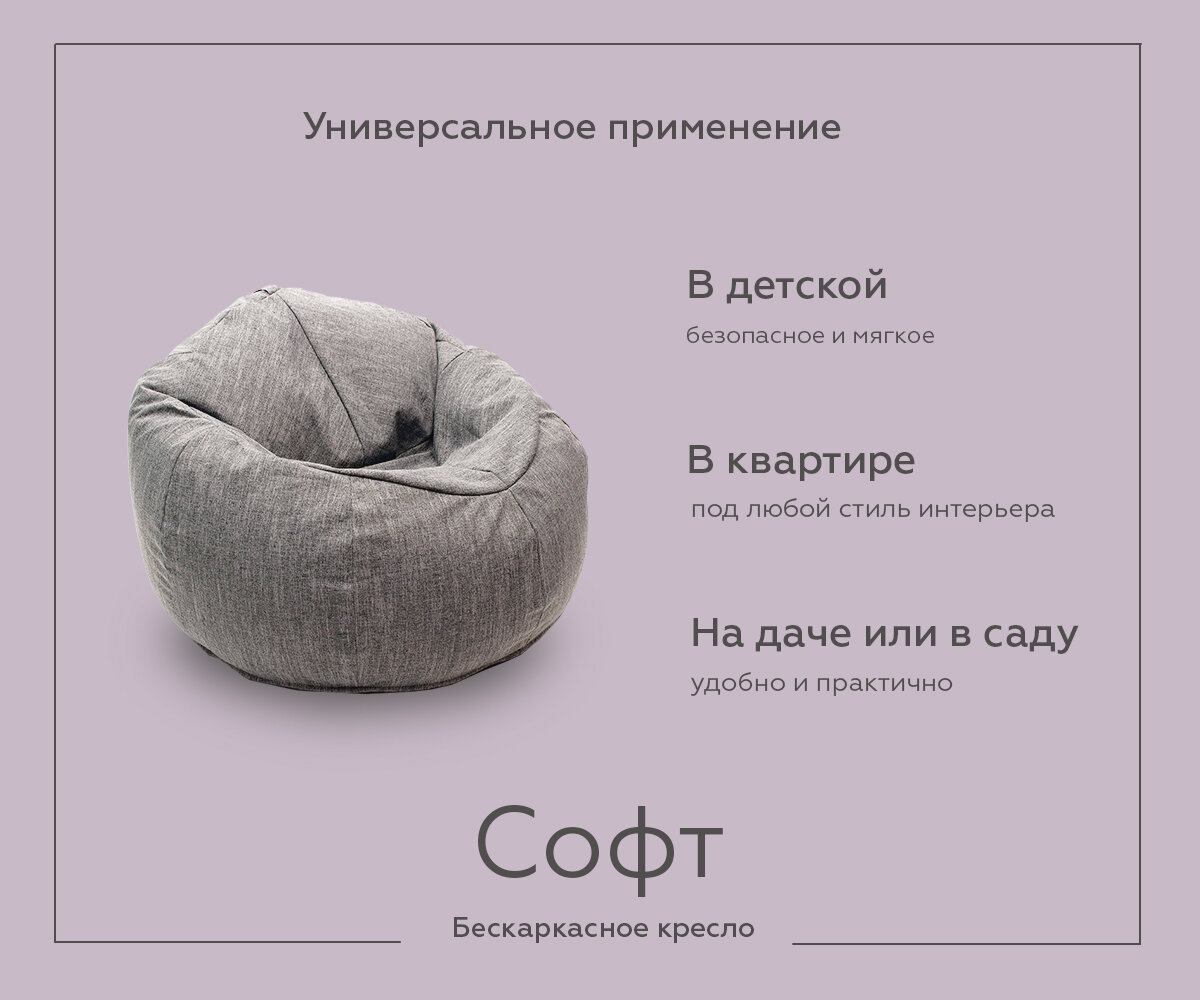 Кресло-мешок WOWPUFF "Софт", XXXXXL, Рогожка, серое, игровое интересное: