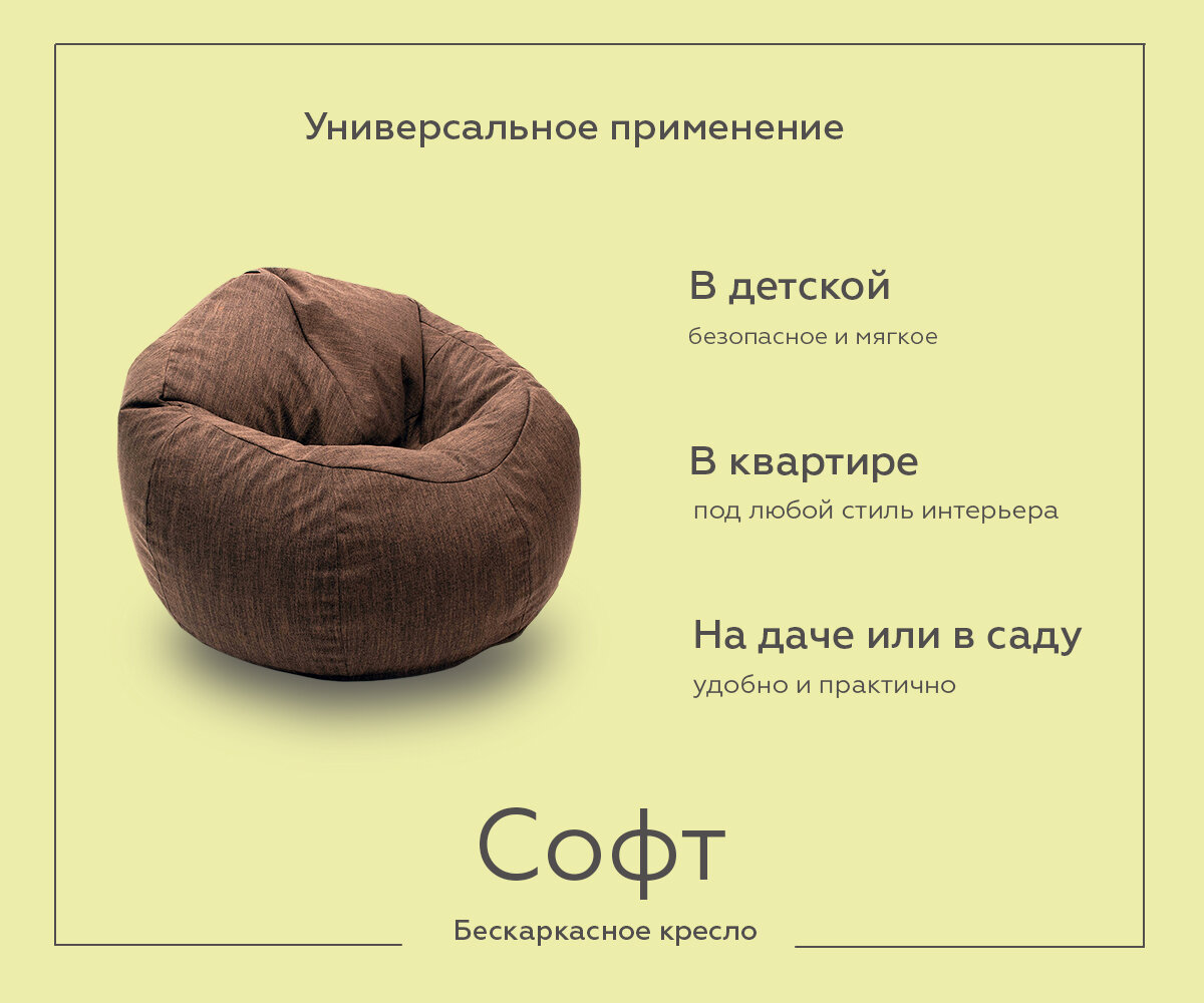 Кресло-мешок WOWPUFF "Софт", Рогожка коричневый, Размер XXXXXL интересное: