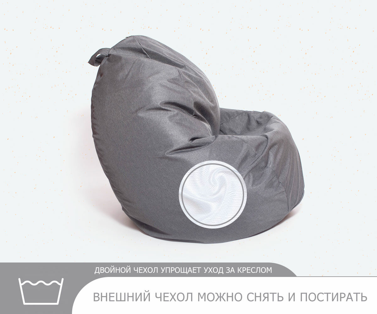 Кресло-мешок игровое WOWPUFF "МАКСИ" XXXXXL, рогожка серый, съемный чехол