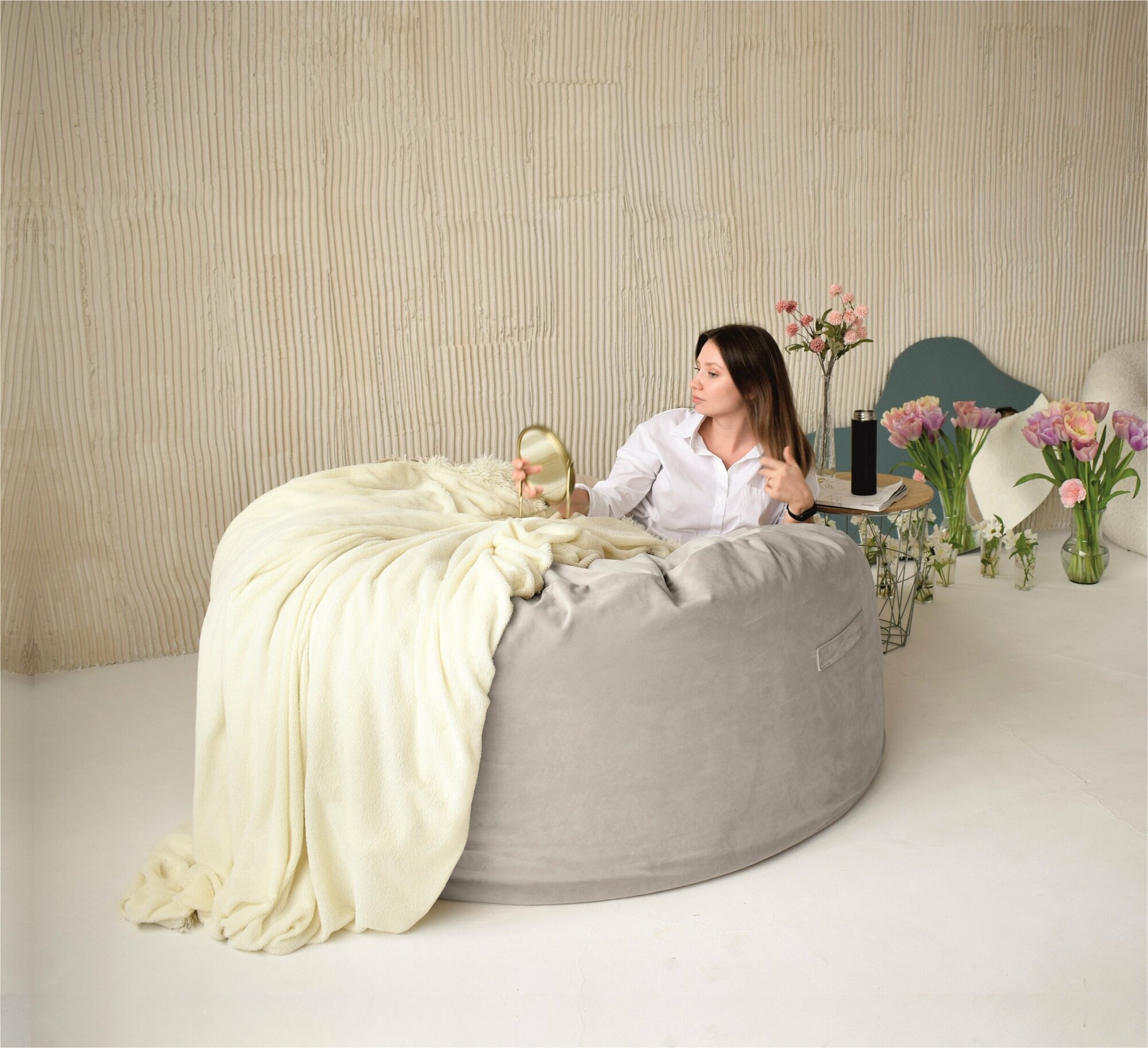 СохранитьКресло-мешок огромный , большой пуфик из натурального велюра премиум качества Nemos. размера XXL, светло-серый интересное: