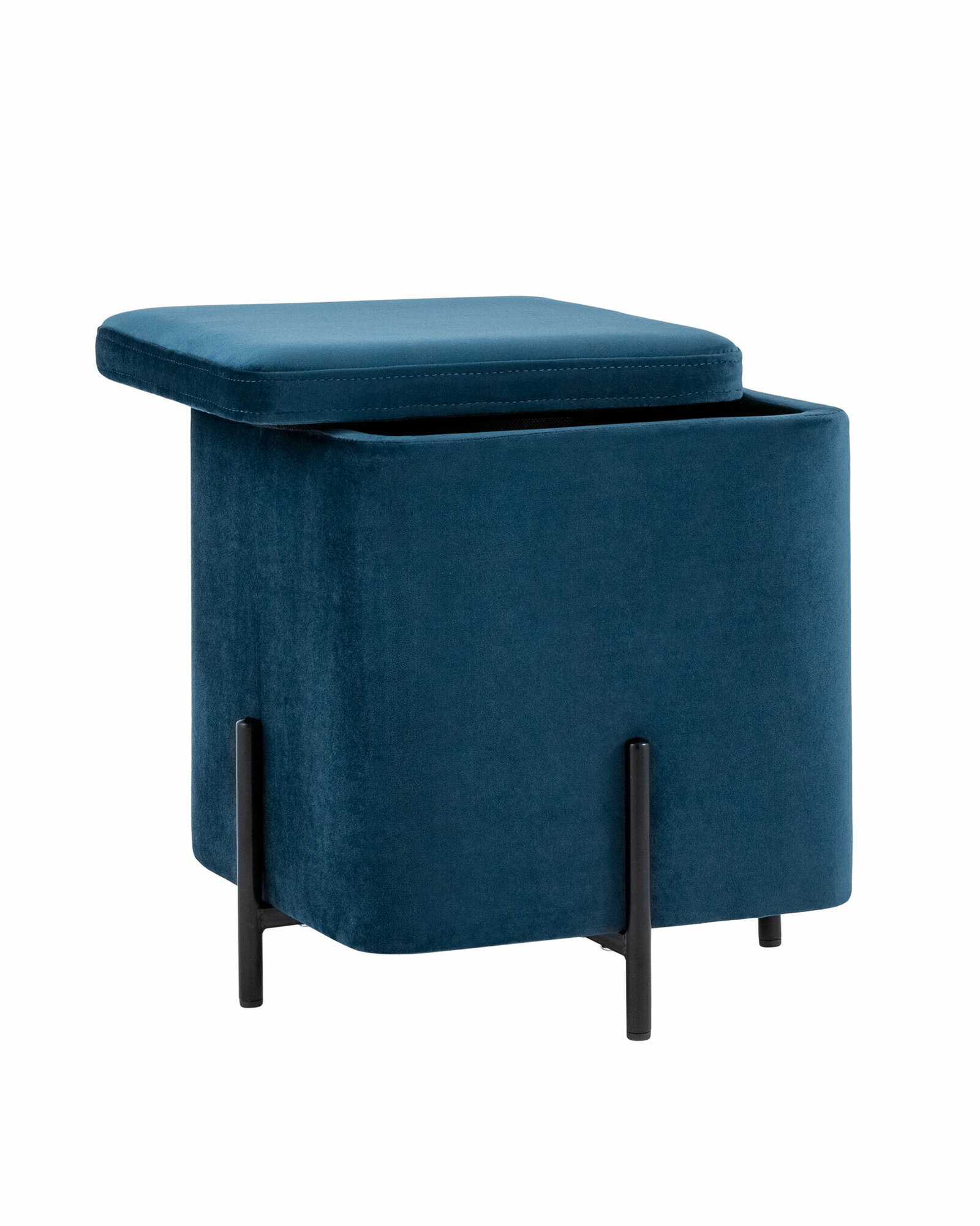 Пуф Грейс квадрат с ящиком велюр синий