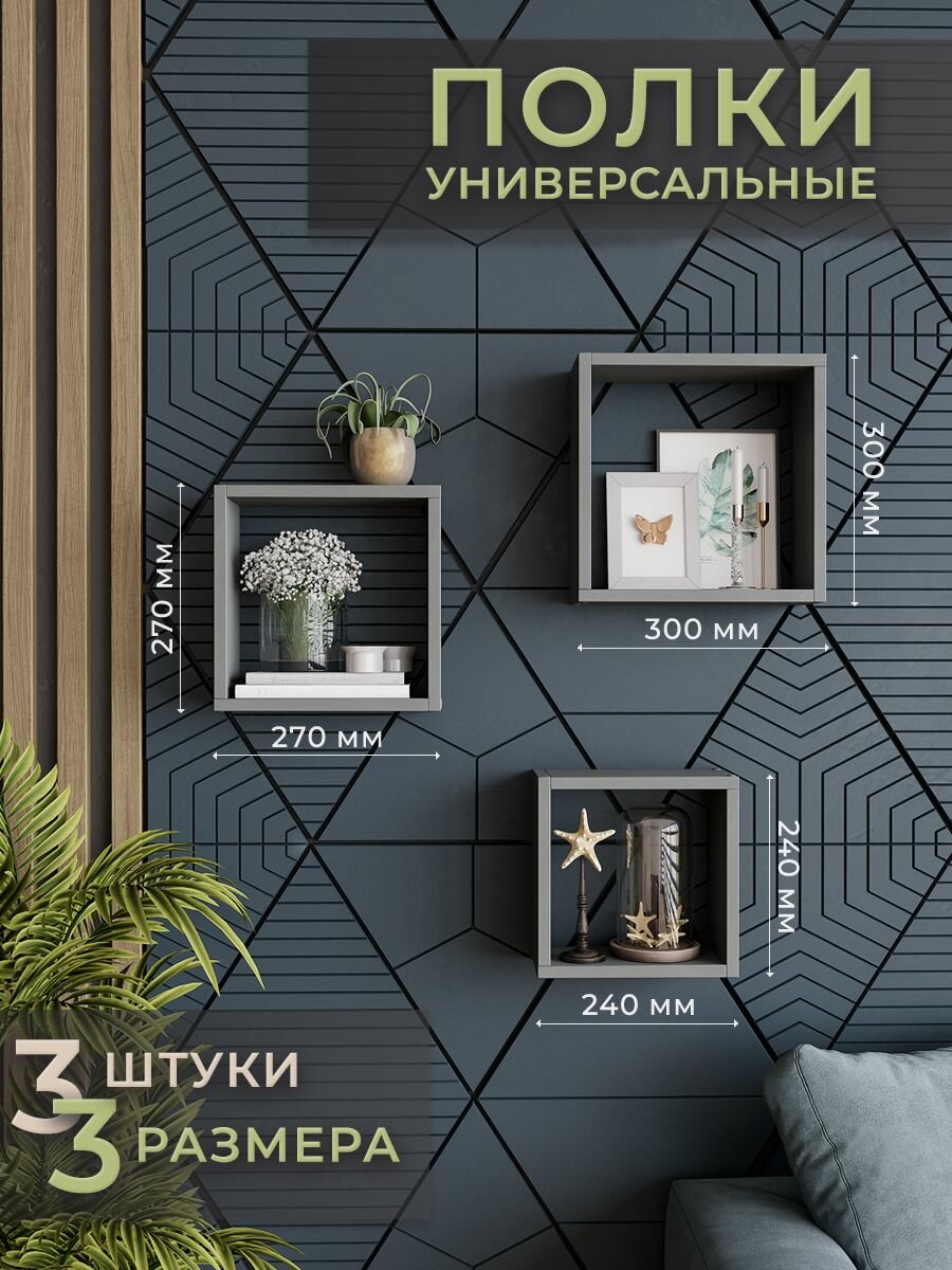 Настенные полки вулканический серый 3 шт. мебель для дома 24х24 см. 27х27 см. 30х30 см.