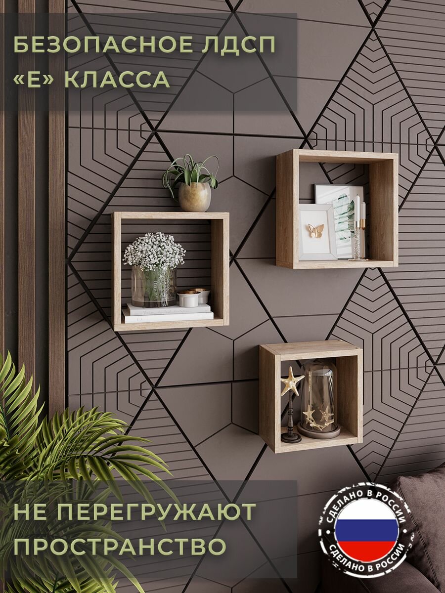 Набор полок настенных квадраты 3 шт